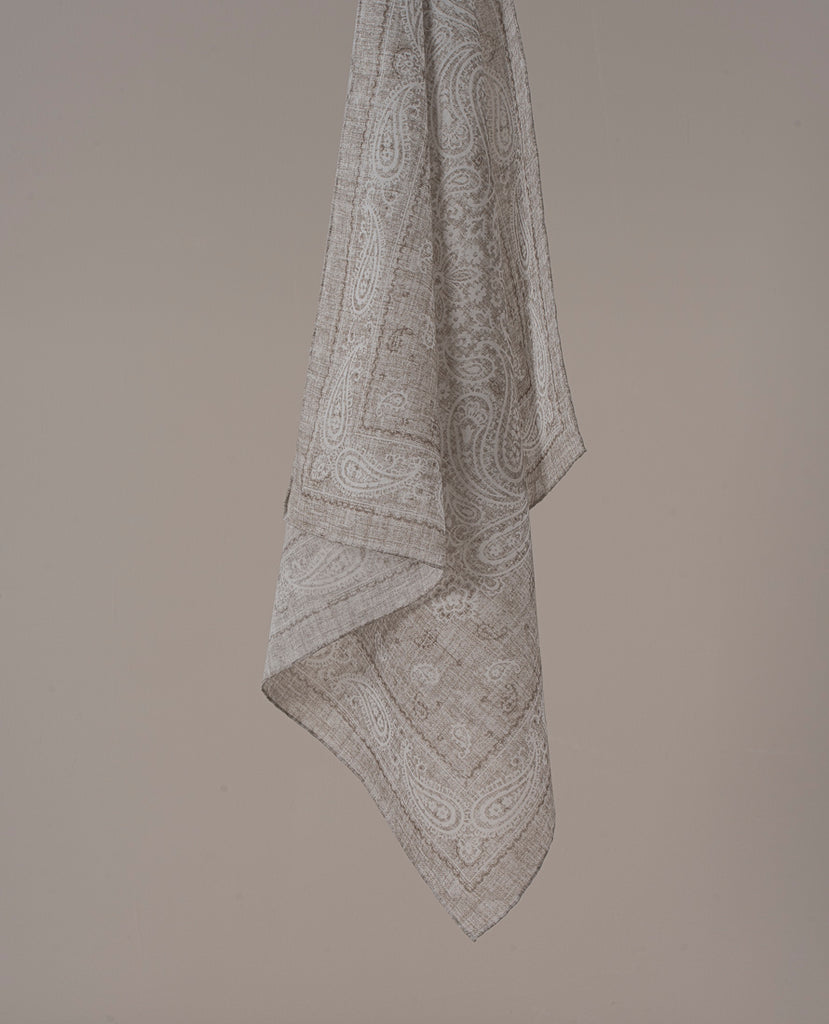 The Beige Bandana Scarf features an elegant vintage paisley printed in pastel colours. You can instantly make your wardrobe look unique and personalised with this totally innovative accessory!