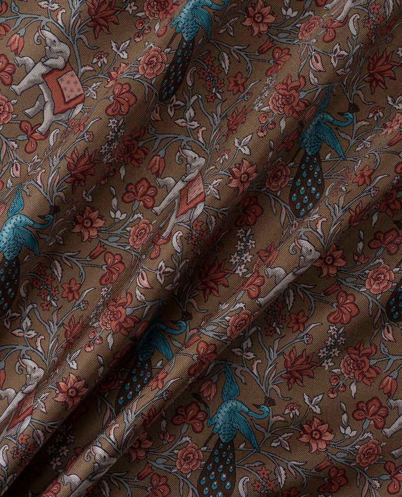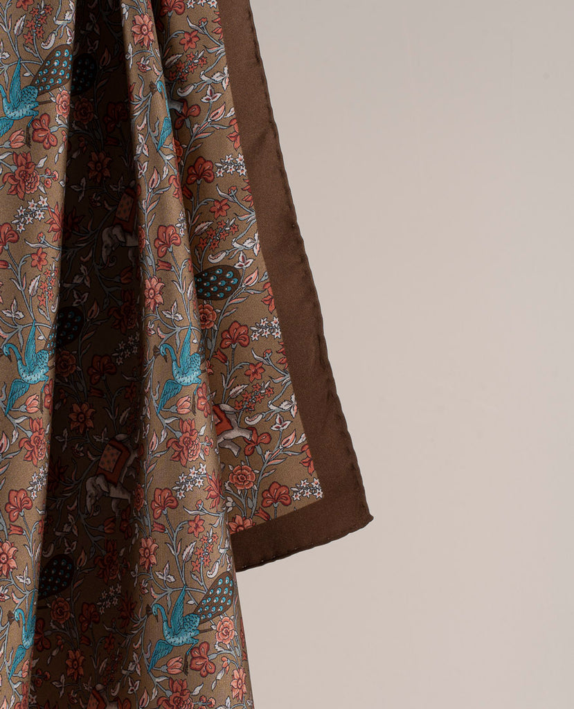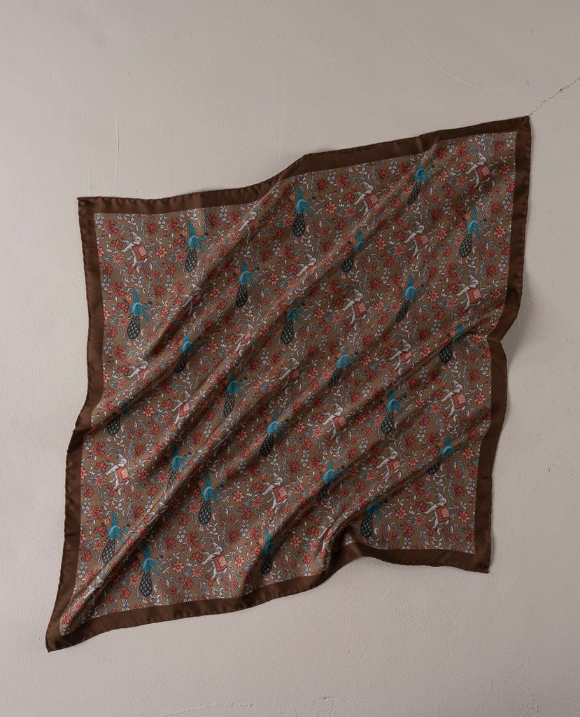 Bandana Scarf Twill Silk - Brown Paradise Garden Print