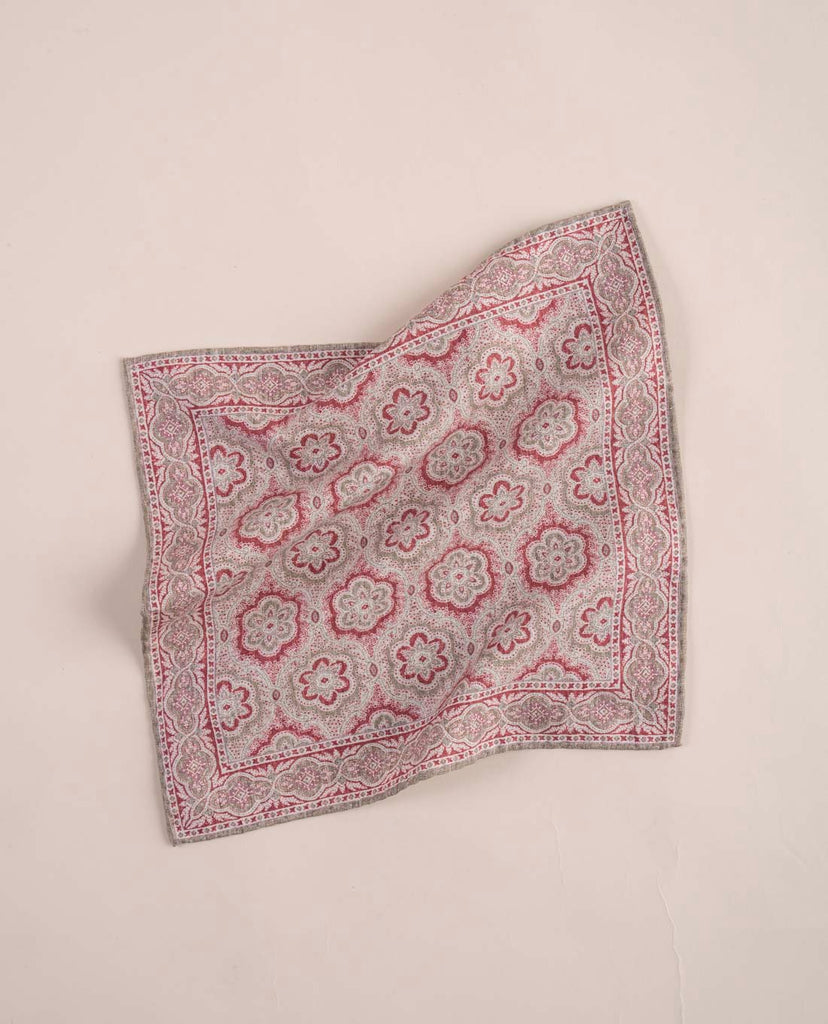 Double Printed Wool Cotton Pocket Square - Large Medallion Beige