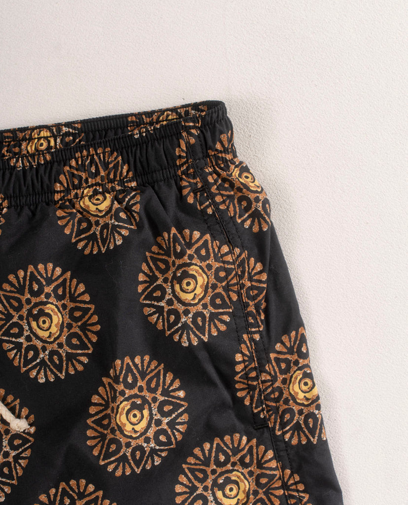 The Ischia swim shorts feature an ancient medallion exclusive print. The Italian Fabric is fast to dry, the mesh lining is added for additional comfort.