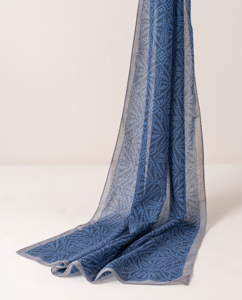 Soft Wool Scarf-Blue Dotted Contemporary Print