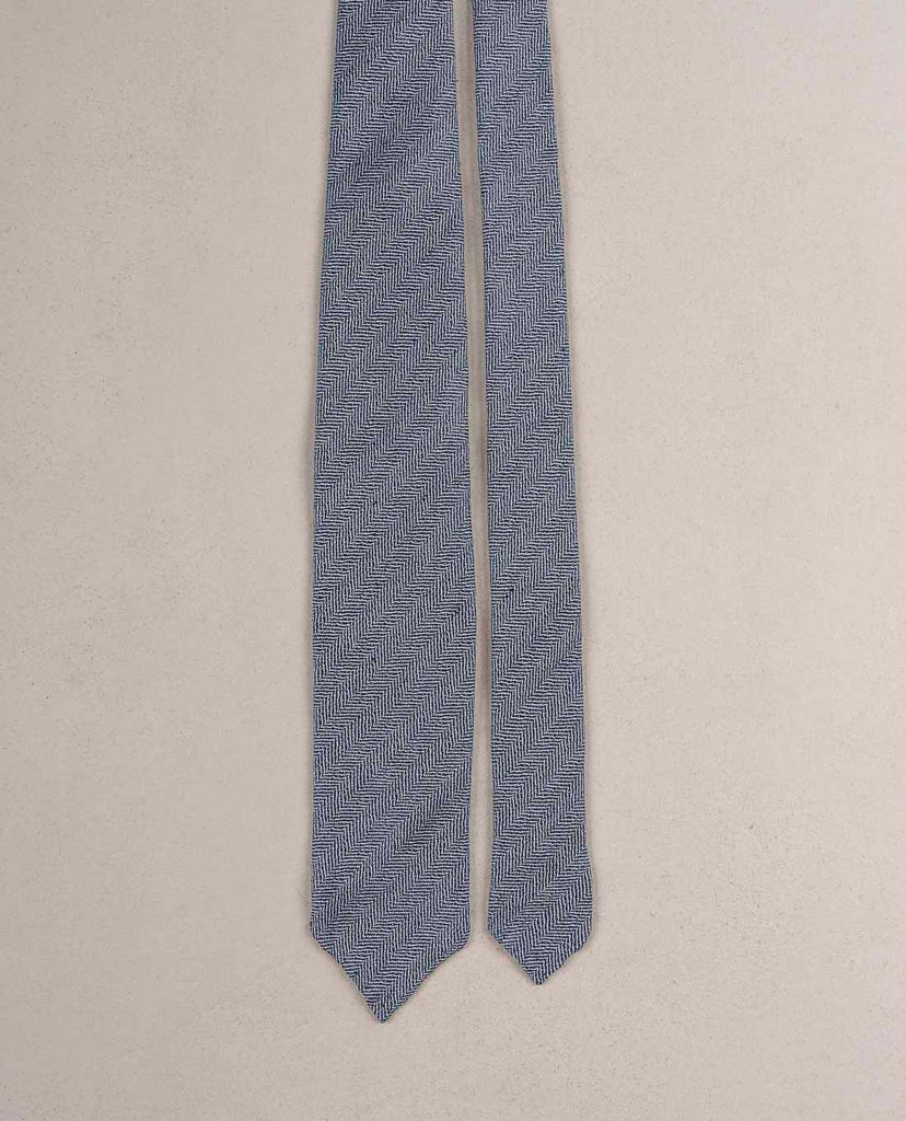 Blue Herringbone Texture Silk Blend Woven Tie