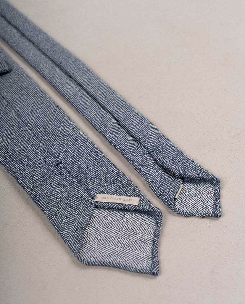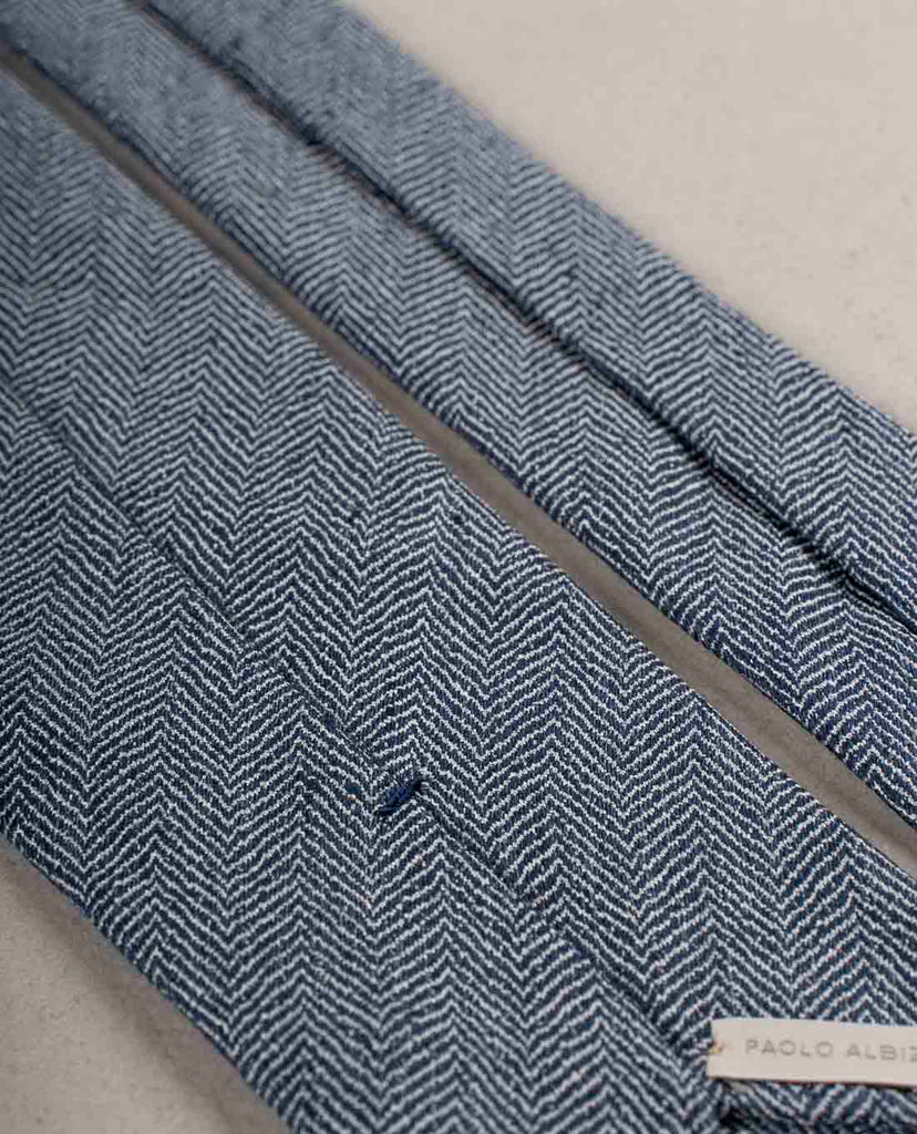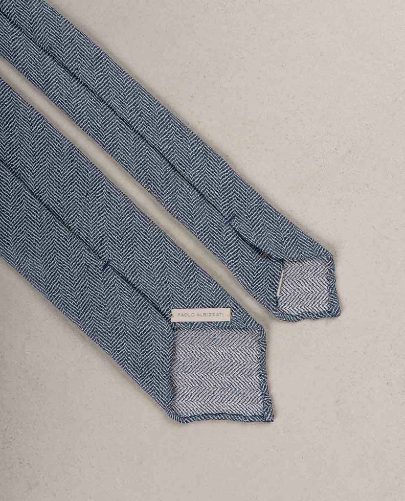 The Herringbone Textured Tie is handcrafted from luxurious fabric blend of linen and silk. The Tie features the untipped construction and hadrolled edges. The Tie made in natural colors is versatile and suitable for office, city life and traveling. The beautiful rare material of the Tie guarantees understated elegance.