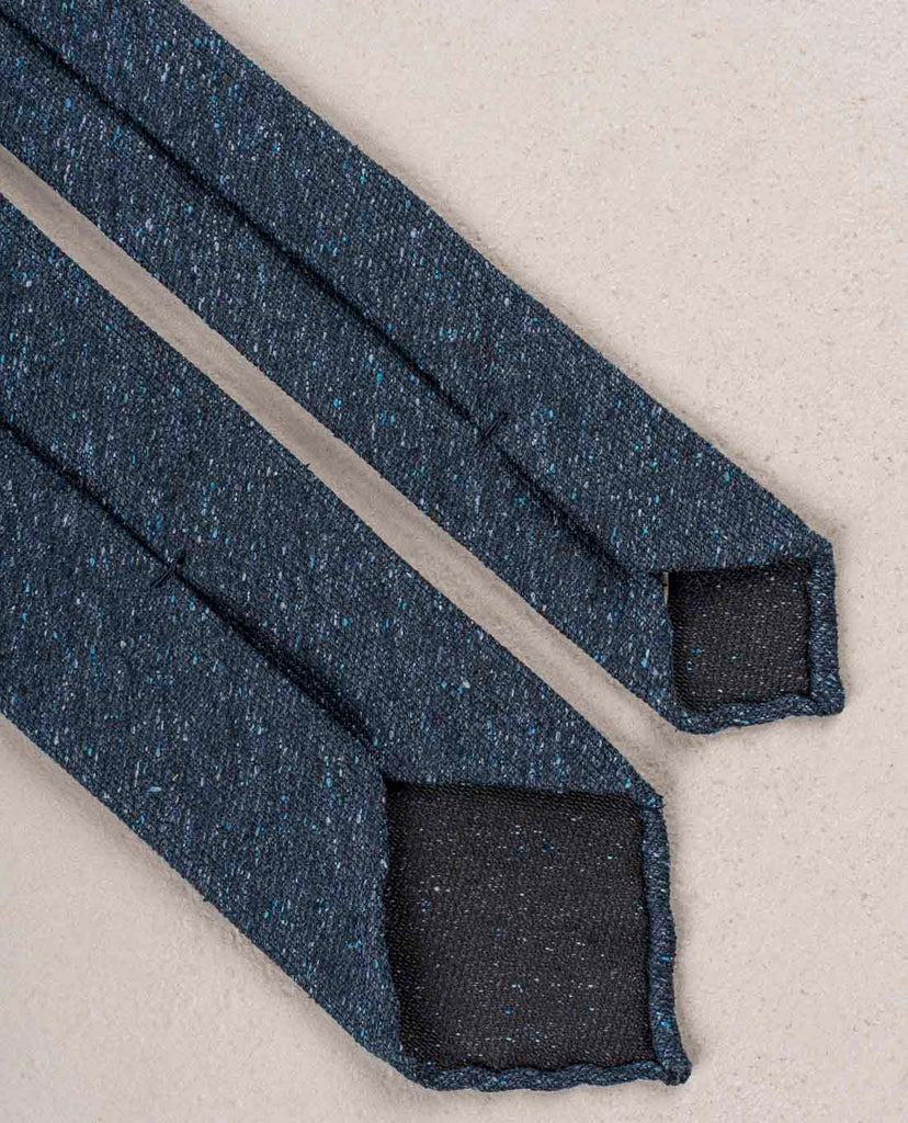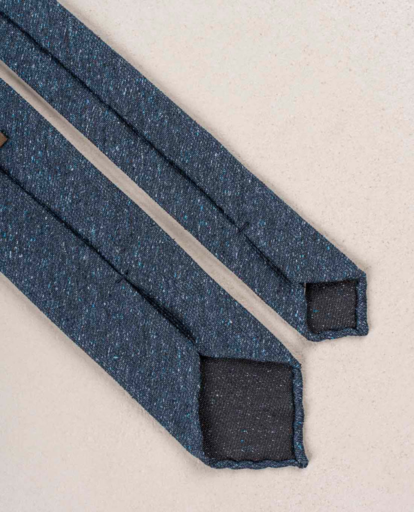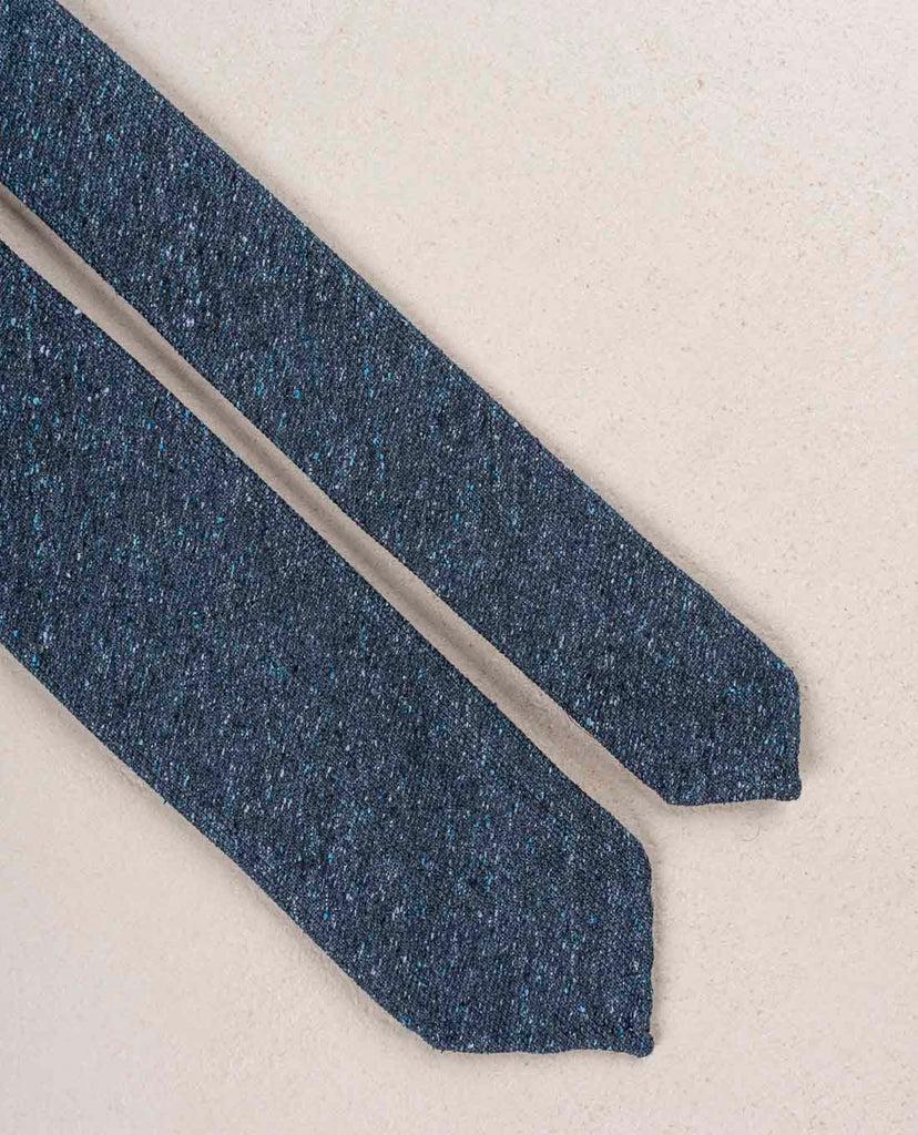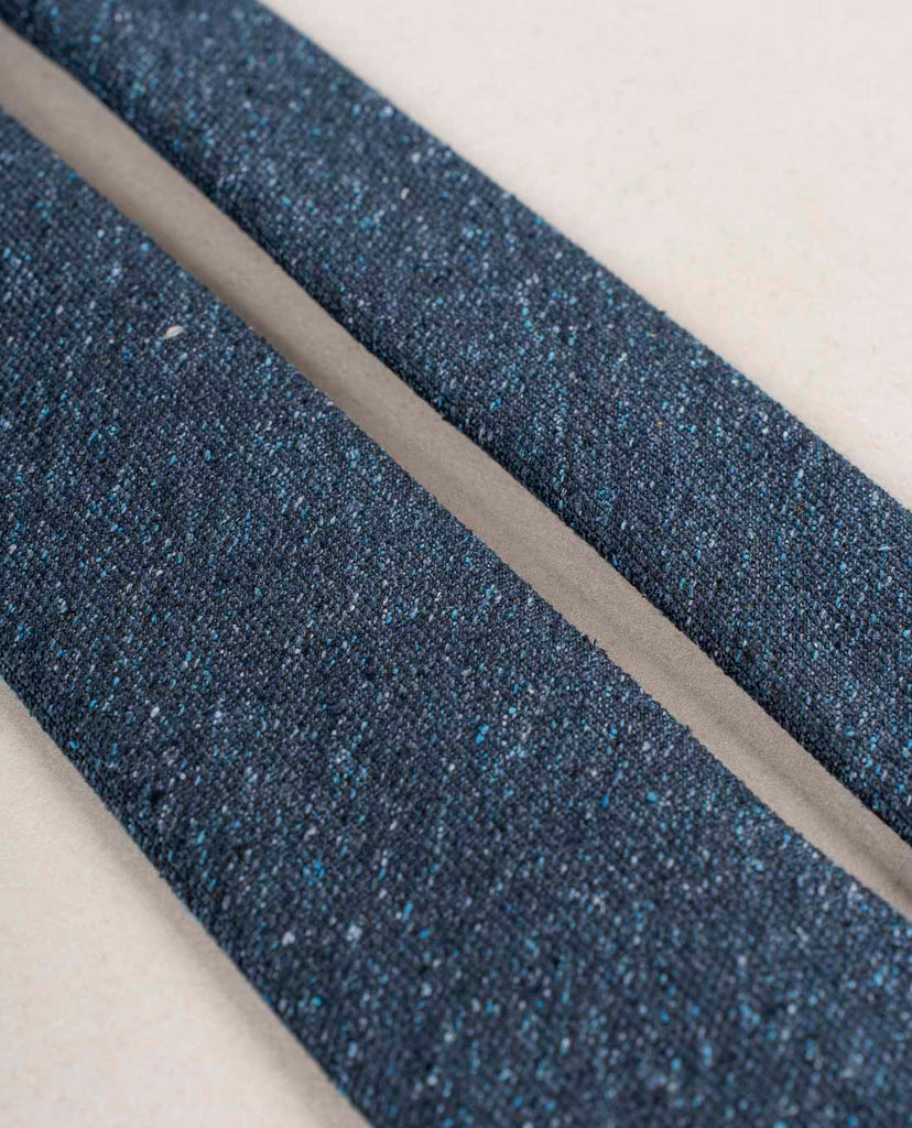 A tie in a solid navy color is an essential piece in any outfit. Bring it to a higher level choosing your navy tie with donegal texture. This luxurious weave adds dimention and interest. Enjoy mixing it with the other