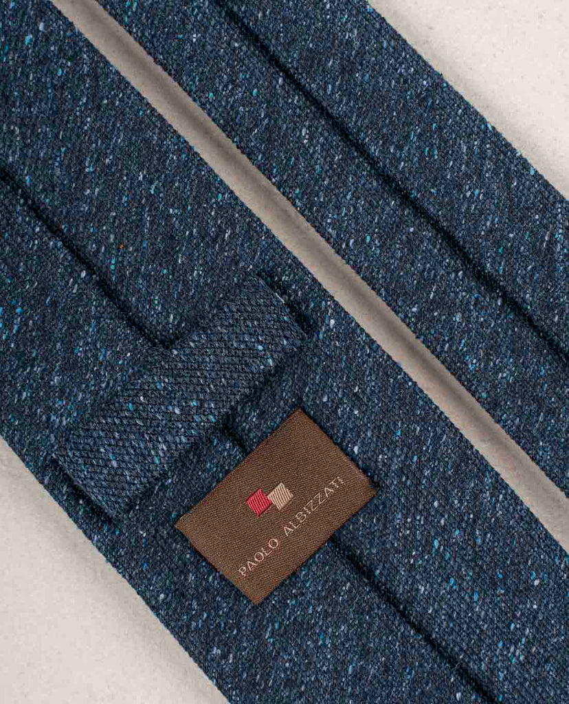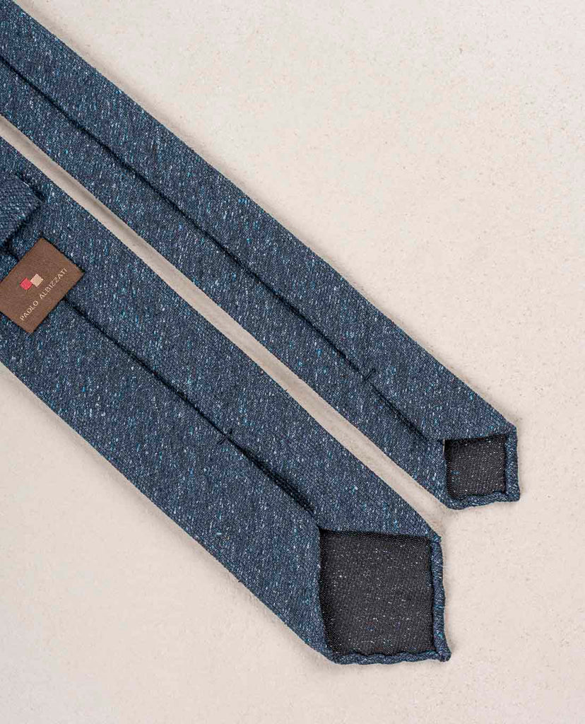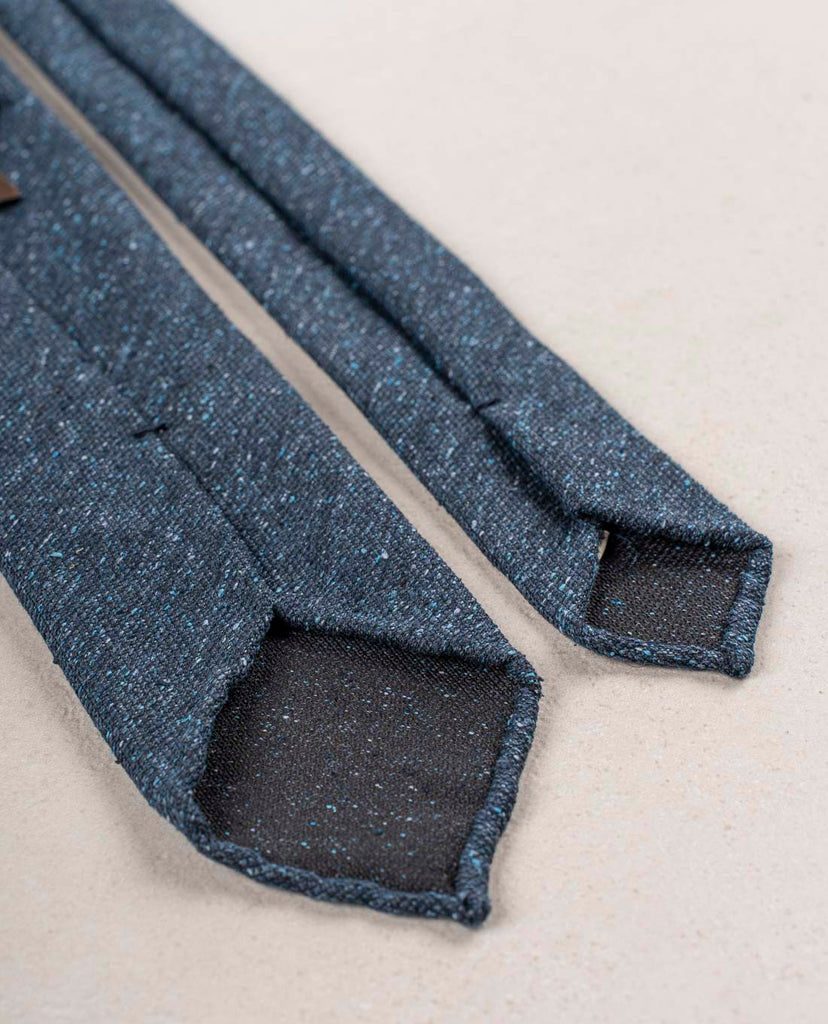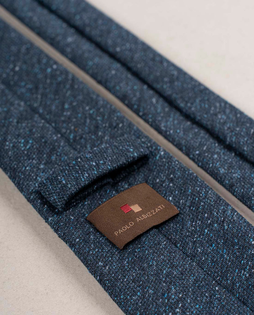 A tie in a solid navy color is an essential piece in any outfit. Bring it to a higher level choosing your navy tie with donegal texture. This luxurious weave adds dimention and interest. Enjoy mixing it with the other