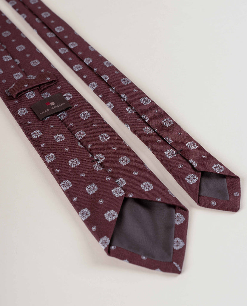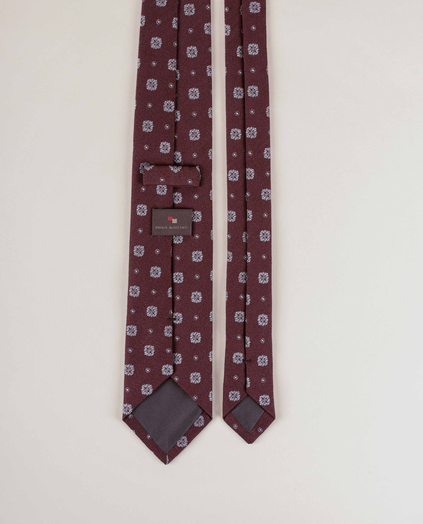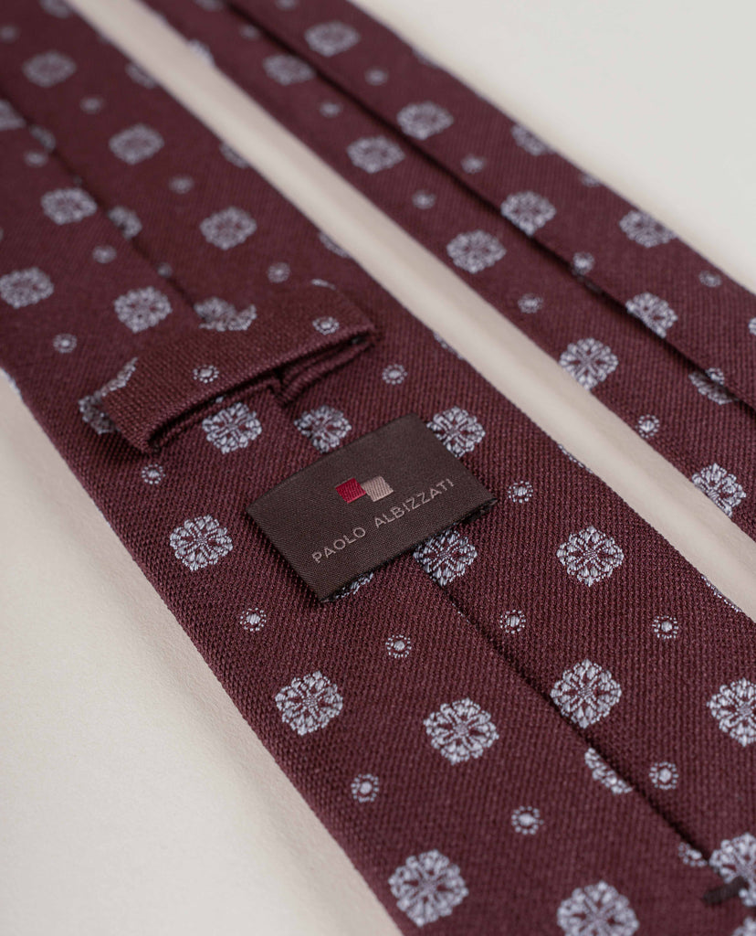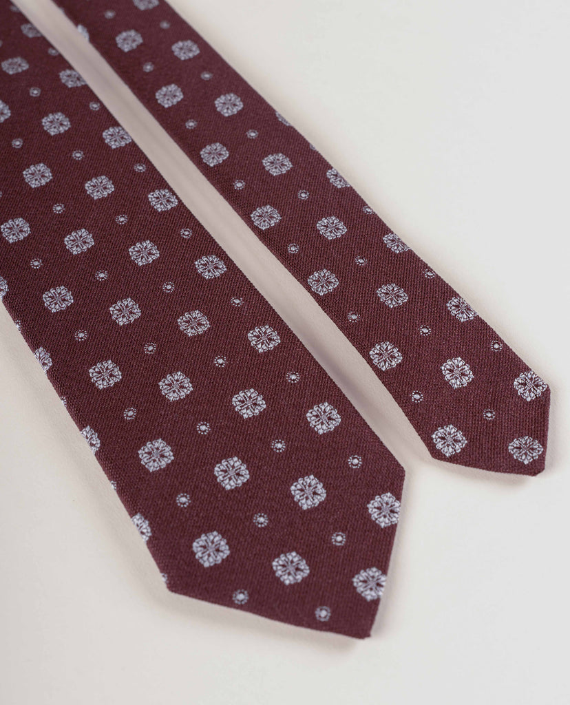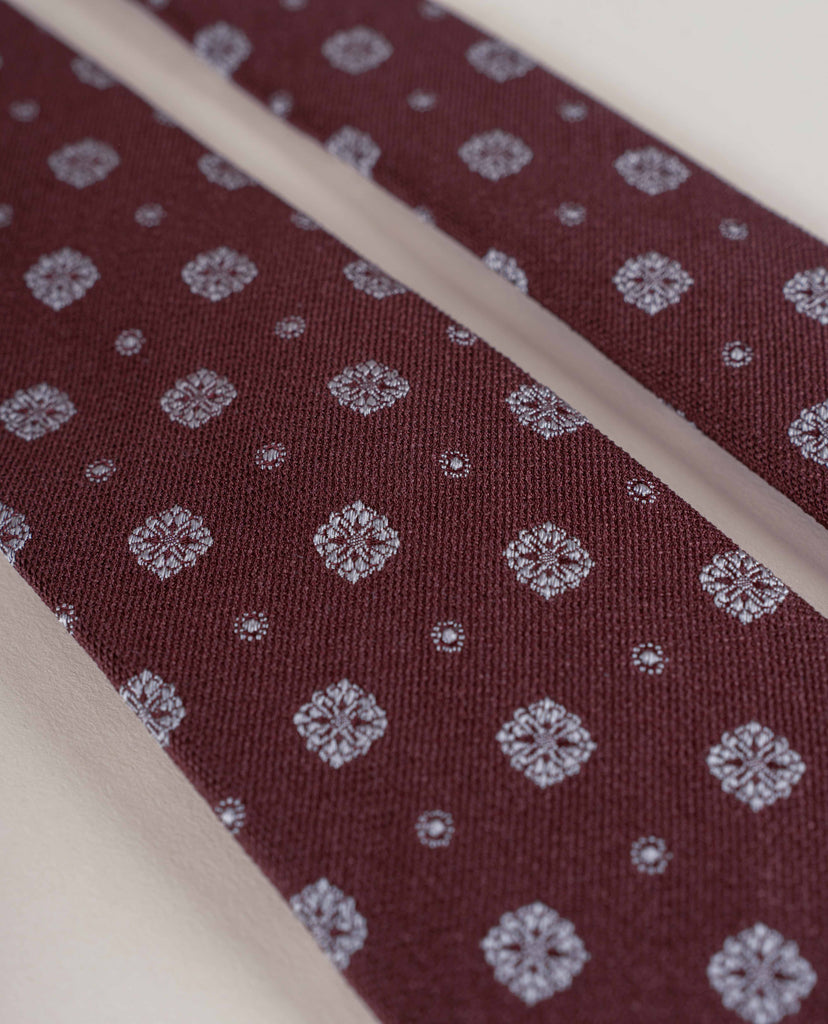 Burgundy Micro Floral Motif Bouclé Woven Silk Tie