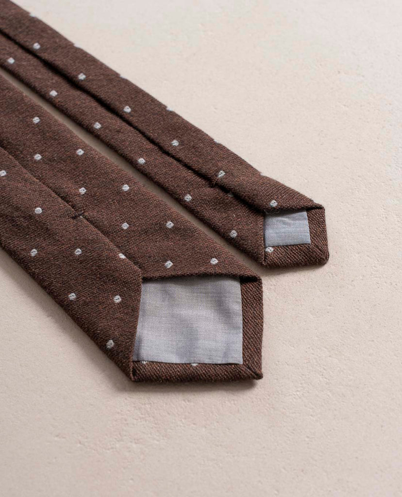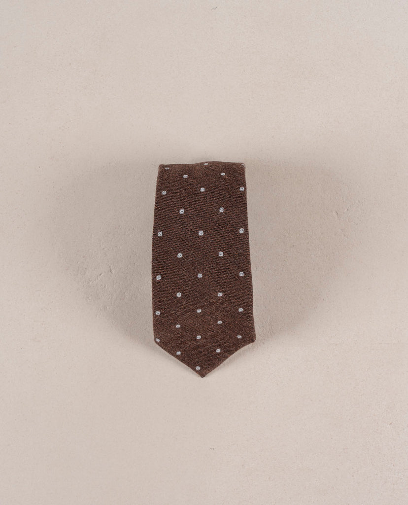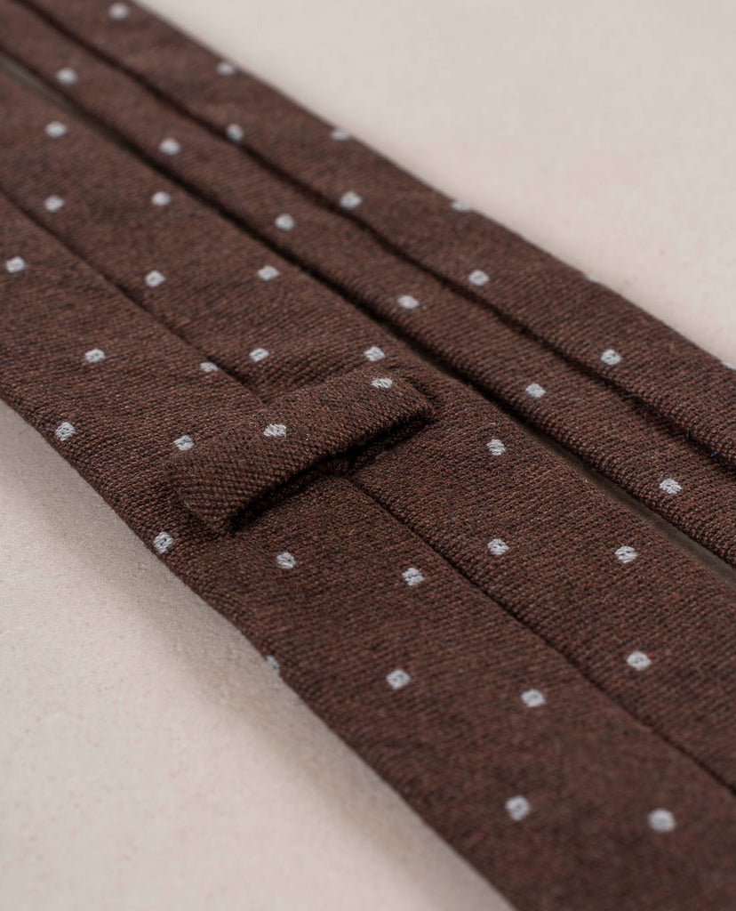 The Brown Dotted Cashmere Tie is a perfect layering piece for a colorful take on fall winter dressing.