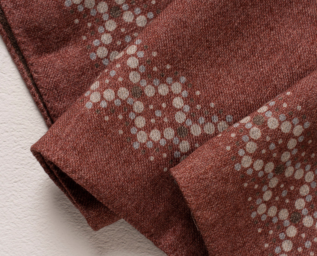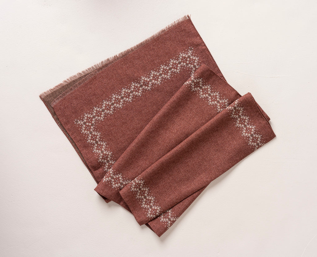 Wool Printed Scarf - Burgundy Melange with Dotted Motif
