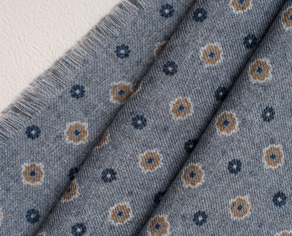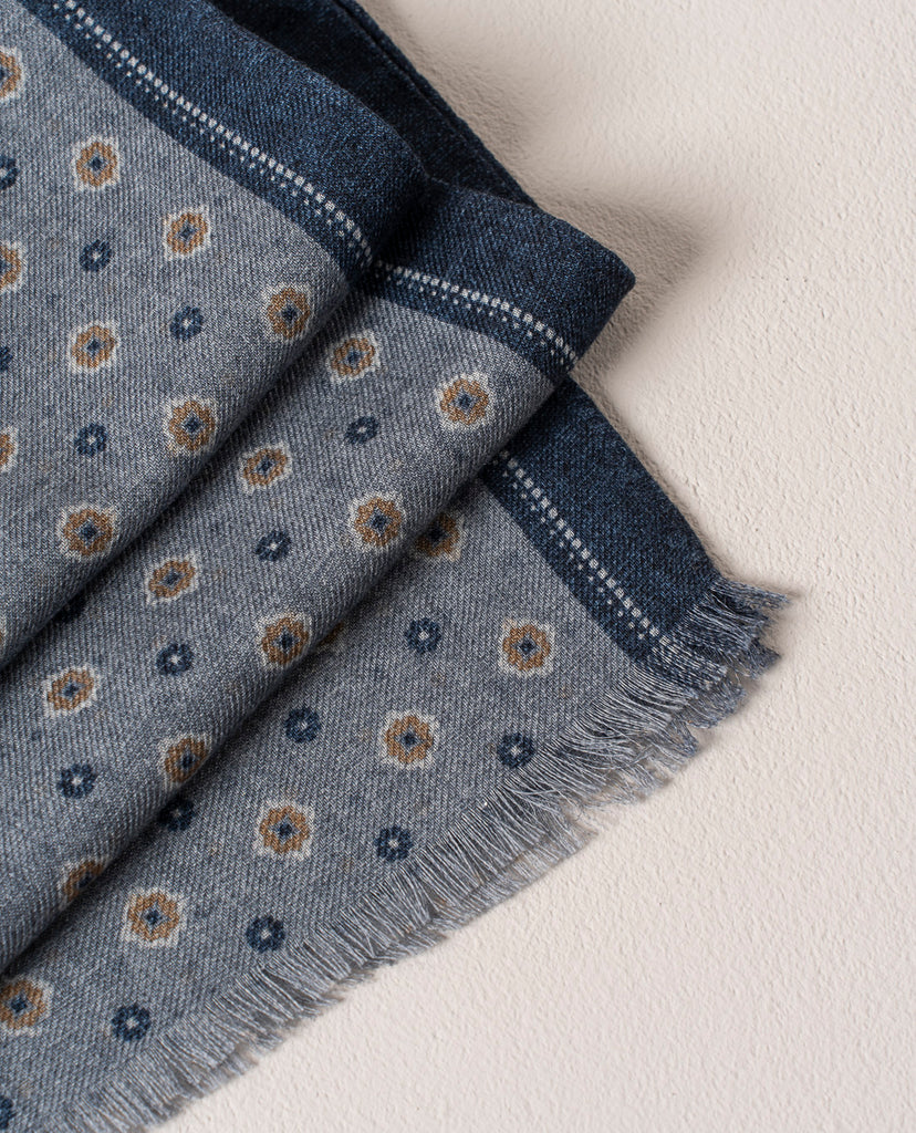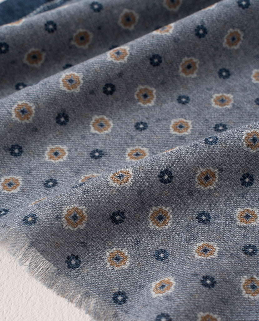 Wool Printed Scarf - Grey Melange Medallion Motif