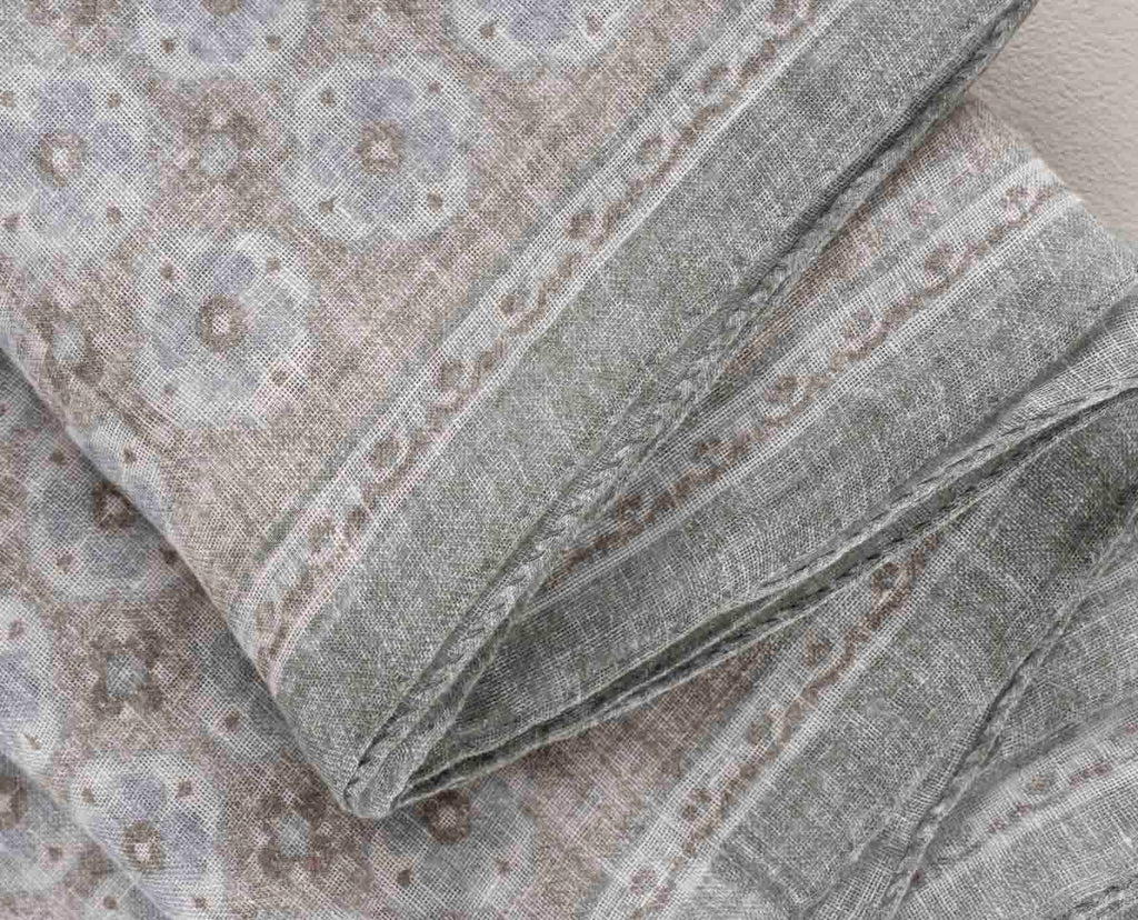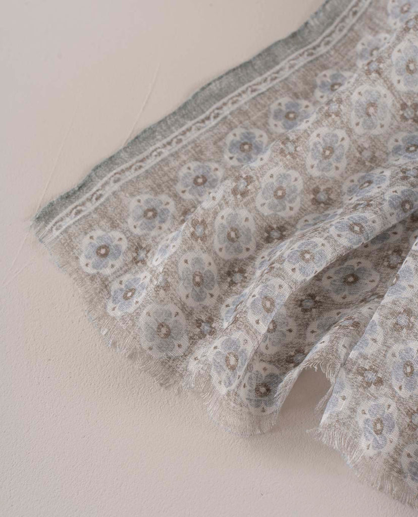 Linen Scarf - Beige Medallion Print