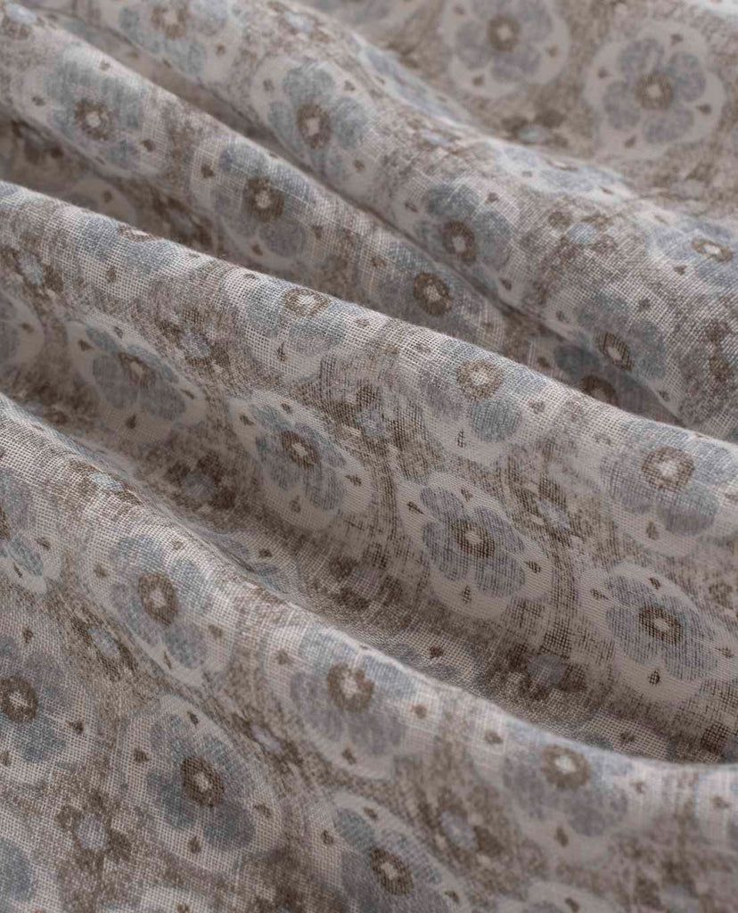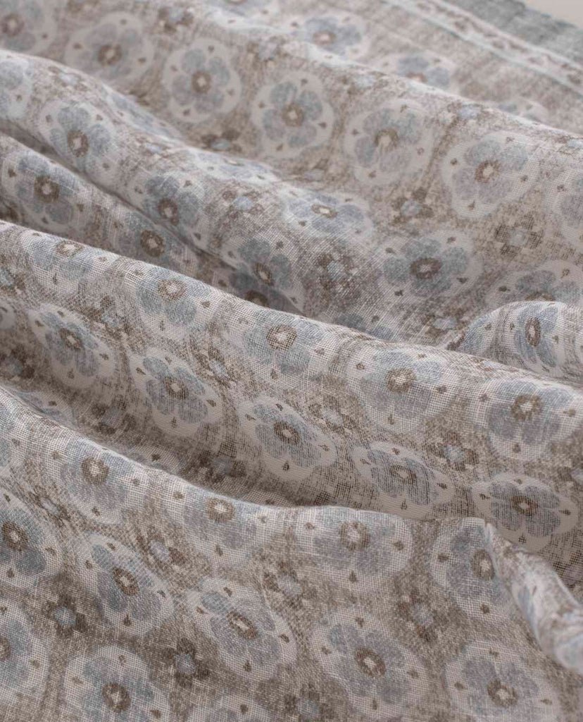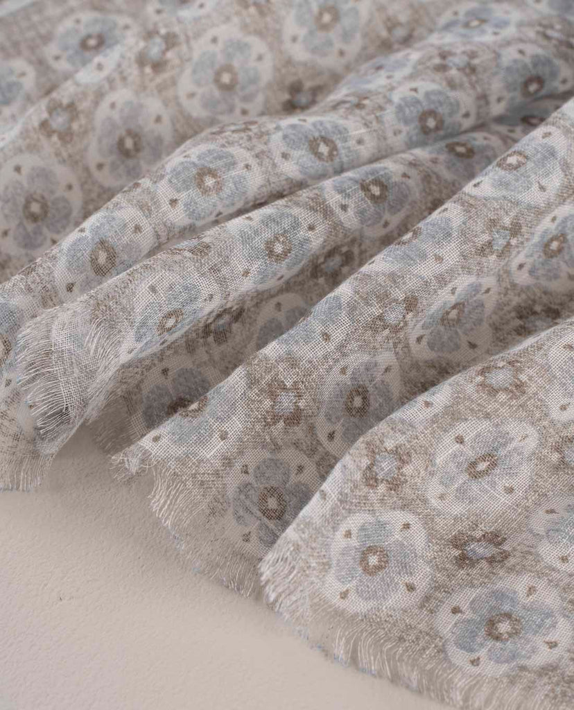 Beige Medallion Print Linen Scarf