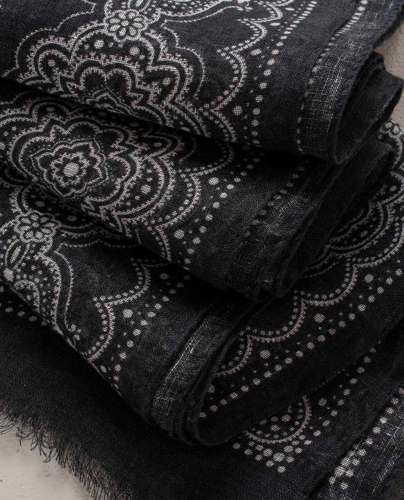 Refresh your look with this trendy Black Linen Scarf. The linen is super soft and pleasant to wear. The modern classic pattern will elevate many outfits.