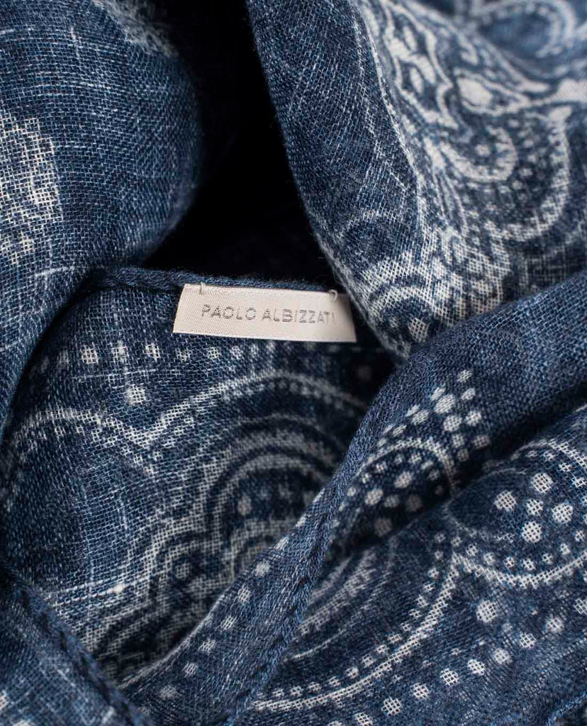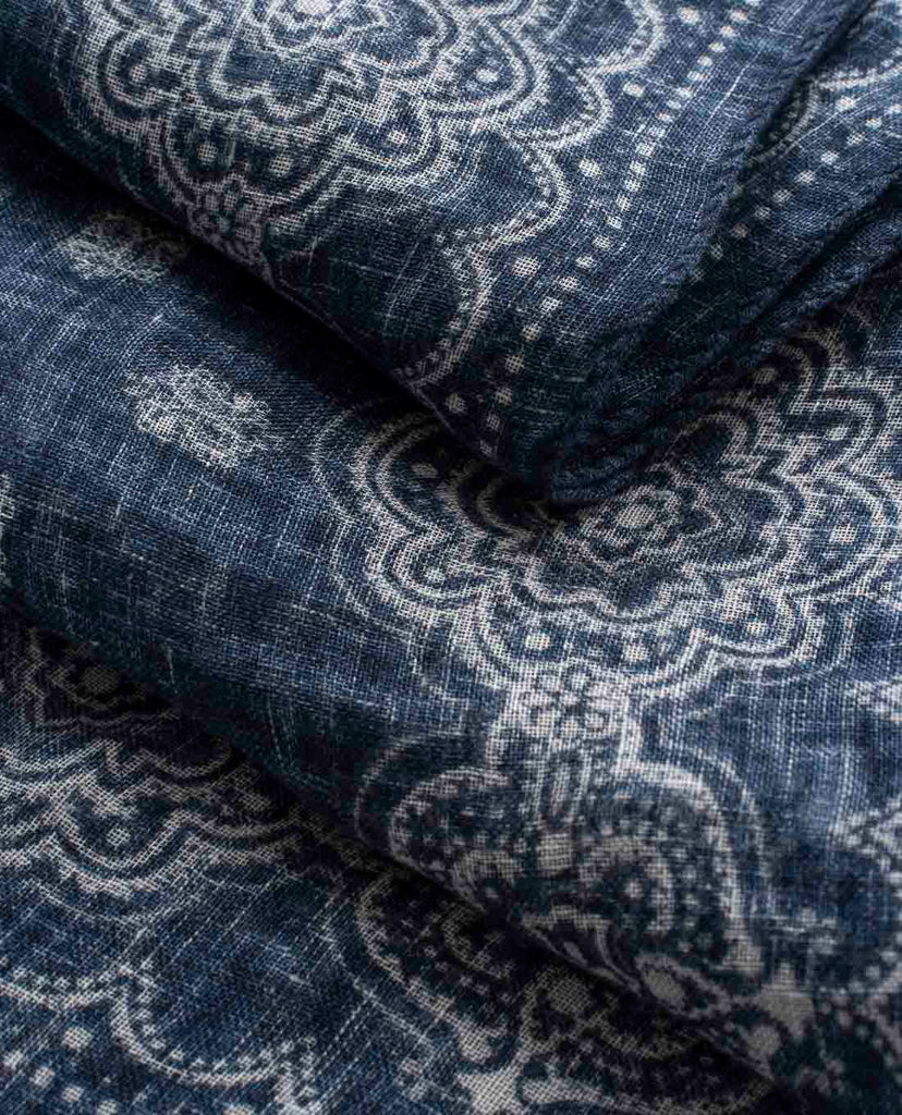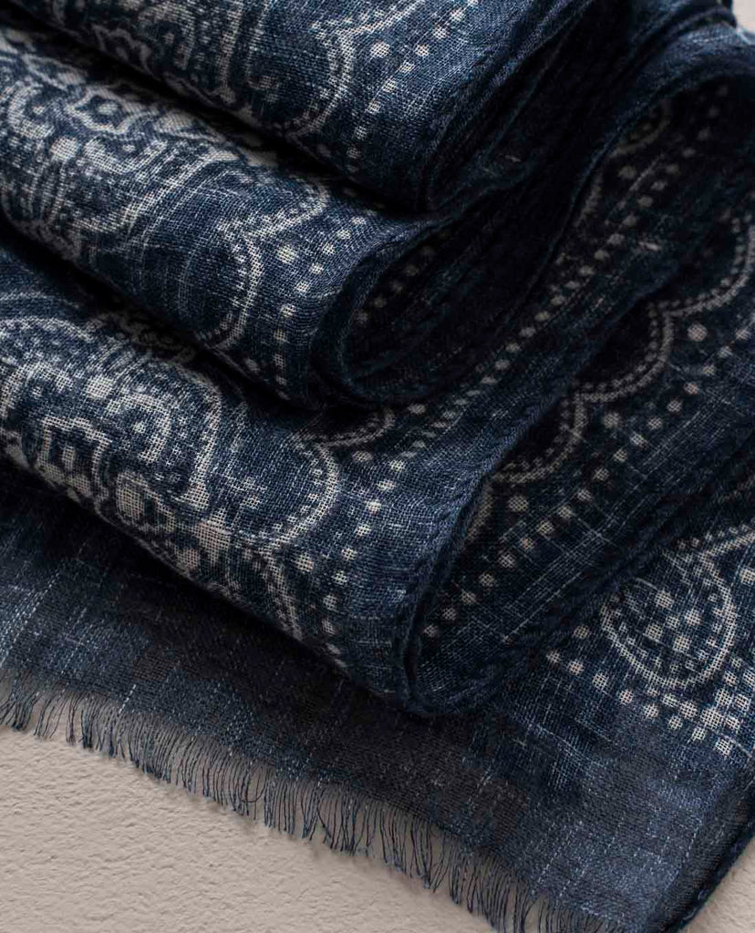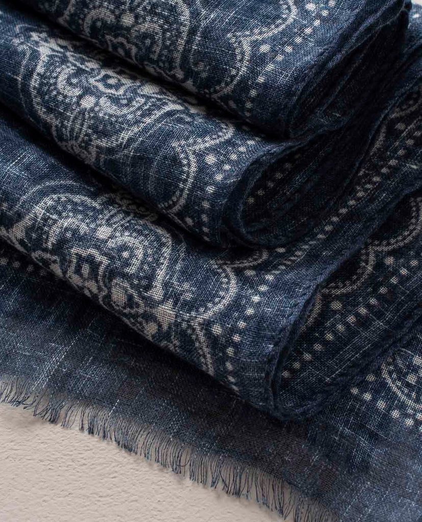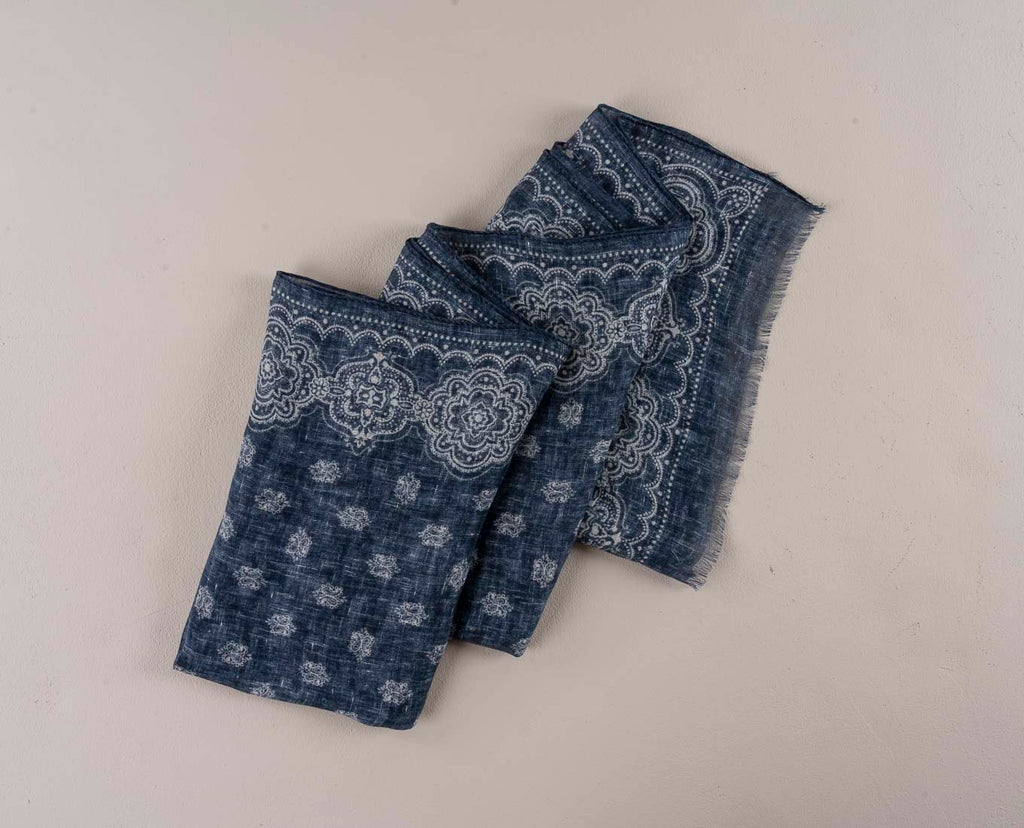 Linen Scarf - Navy Blue Classic Medallion Print