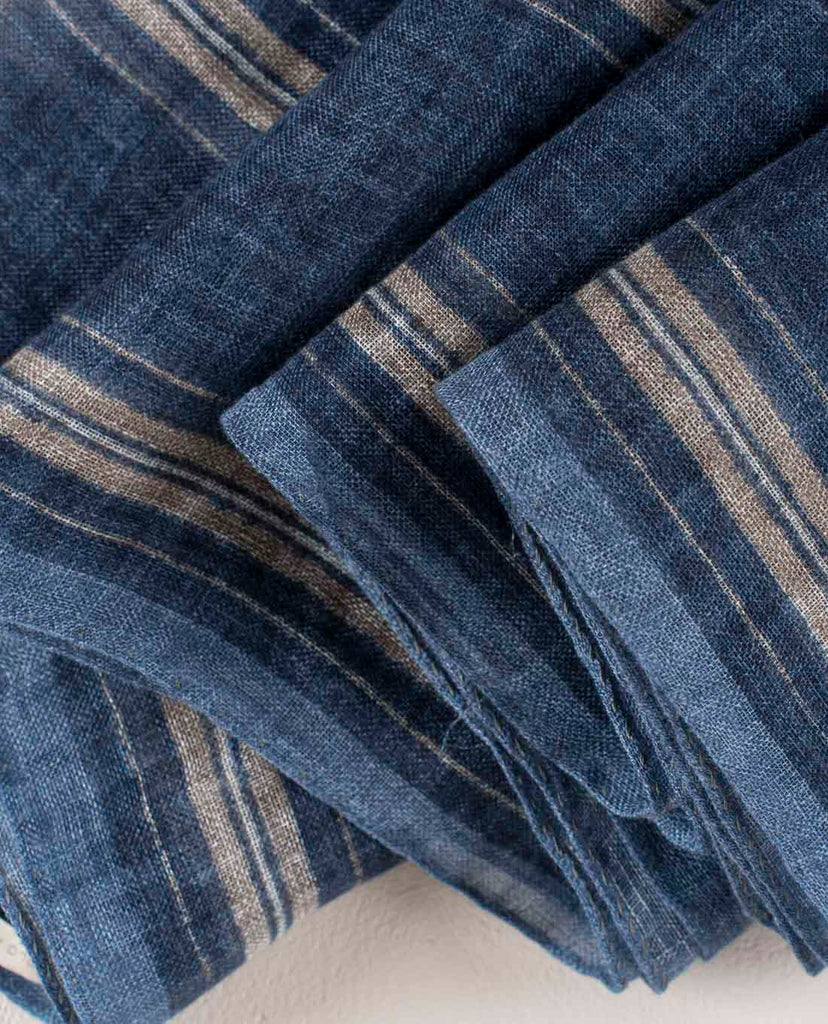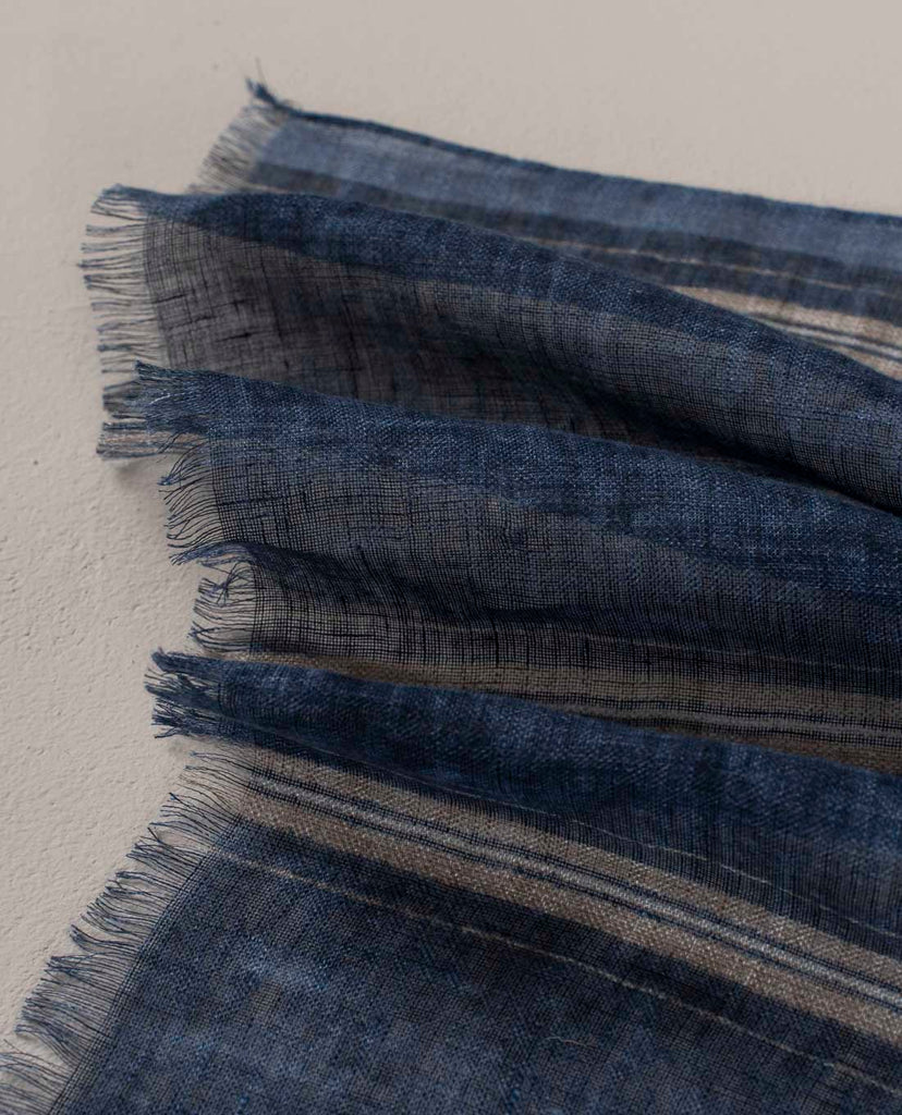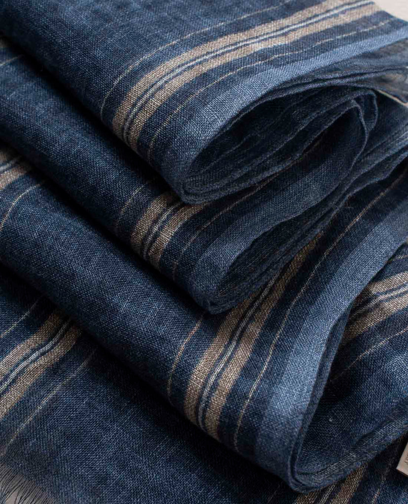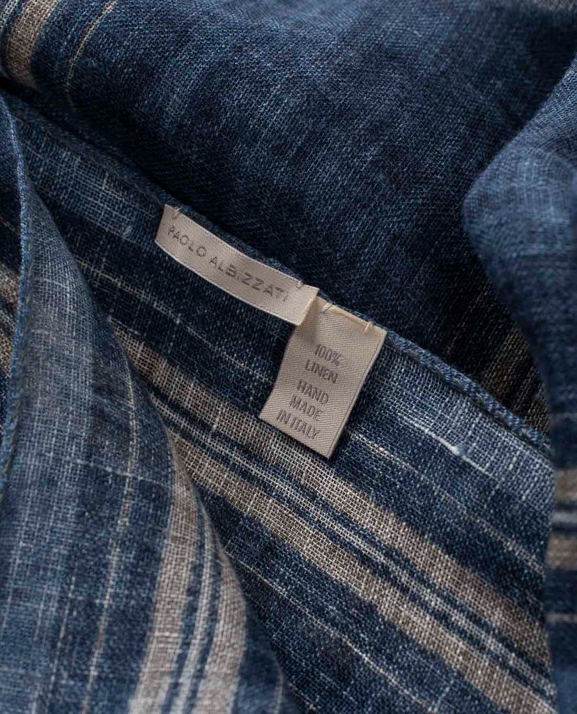 The Navy Blue Striped Linen Scarf is the best-seller from Paolo Albizzati's Collection. The softness of pure linen, elegant colours and sophisticated prints make this scarf a must-have for Spring-Summer Season.