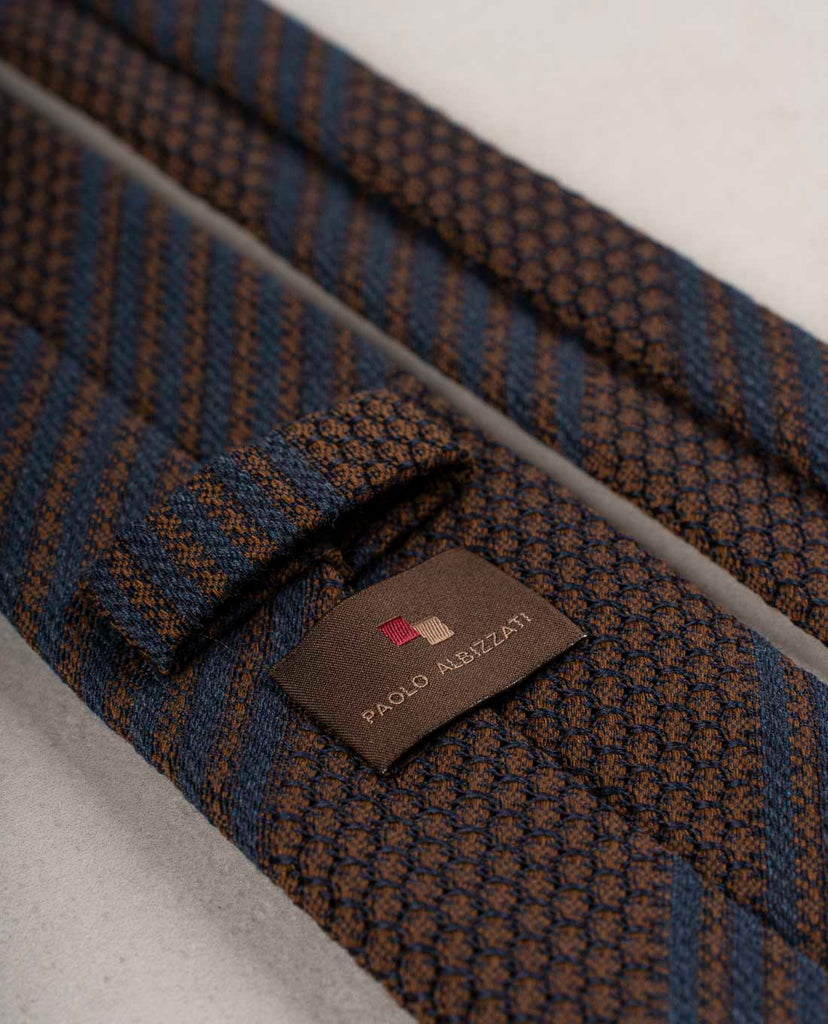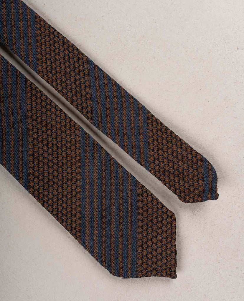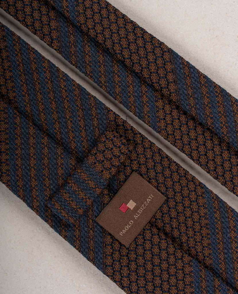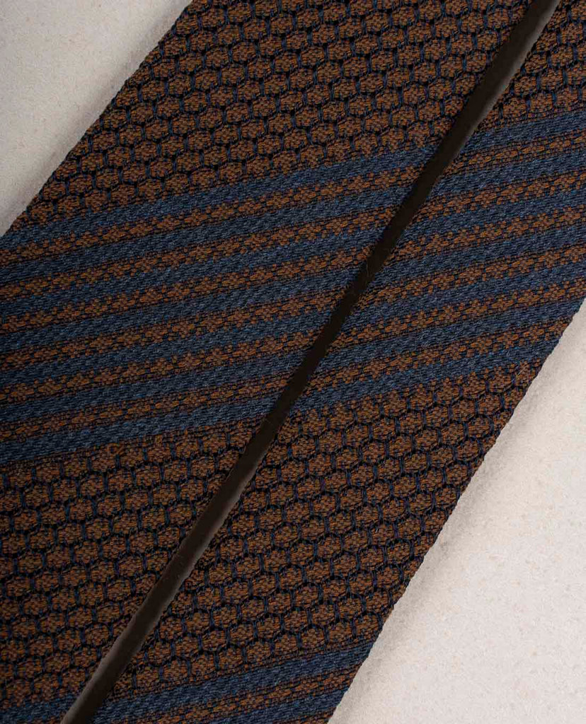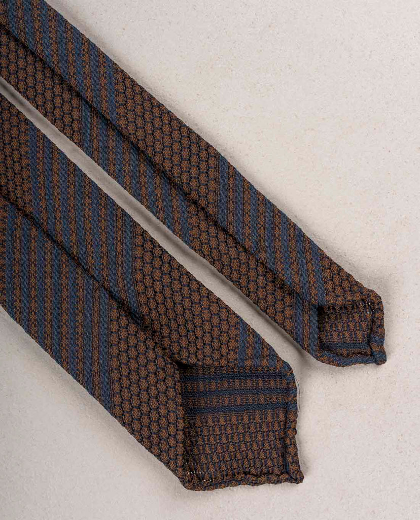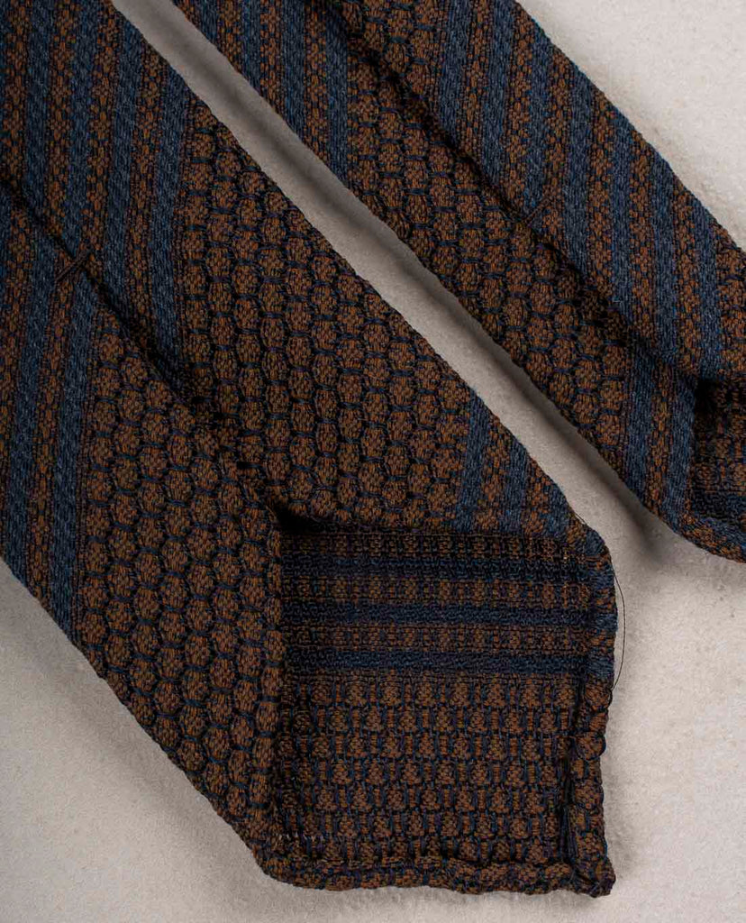 Brown with Navy Blue Stripes Grenadine Woven Donegal Silk Tie