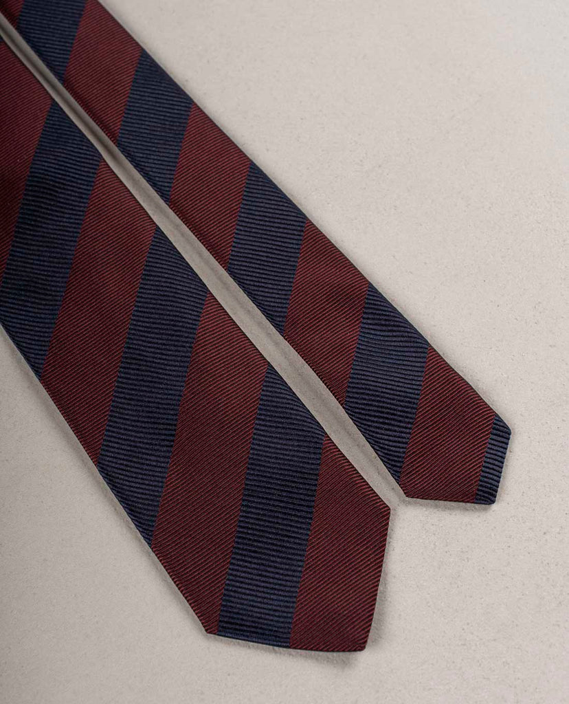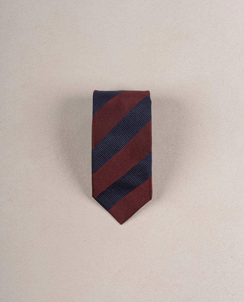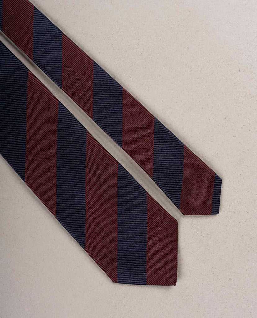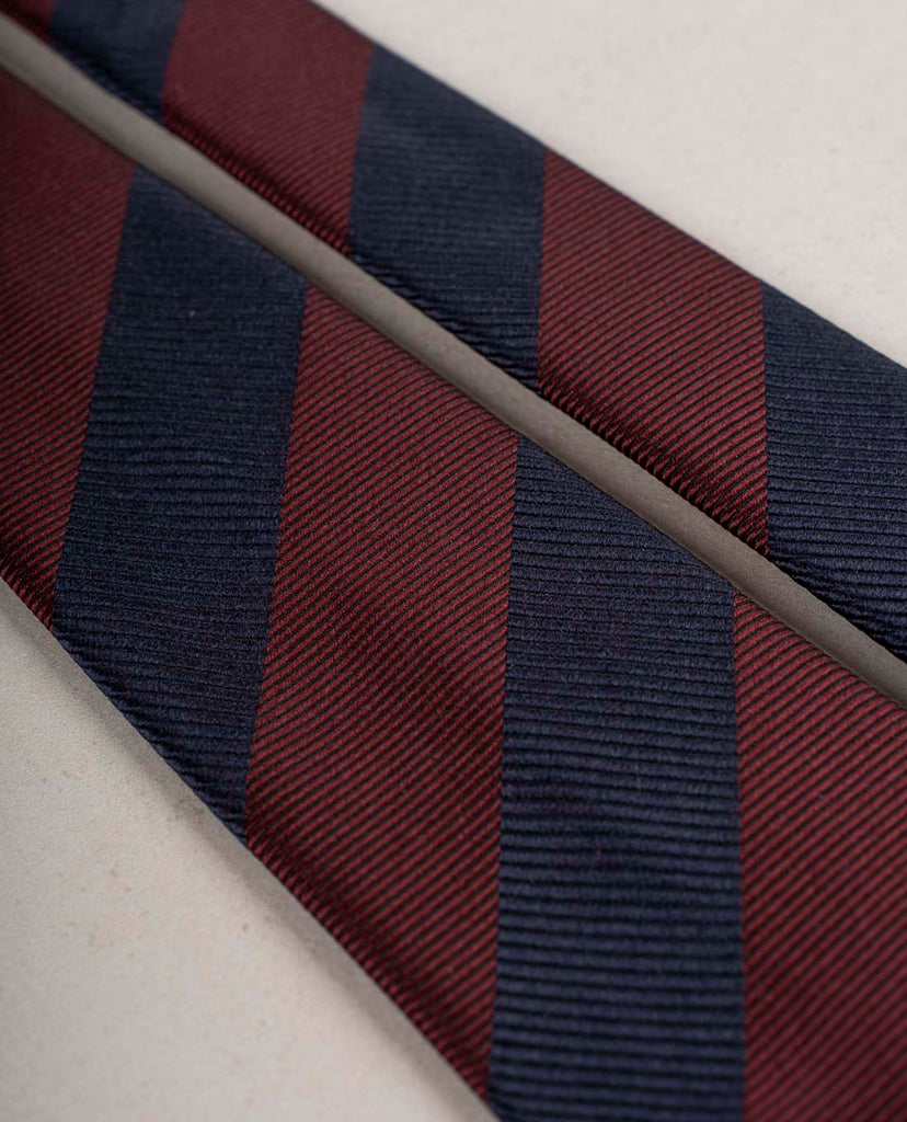 Striped Woven Silk Tie - Navy Blue and burgundy