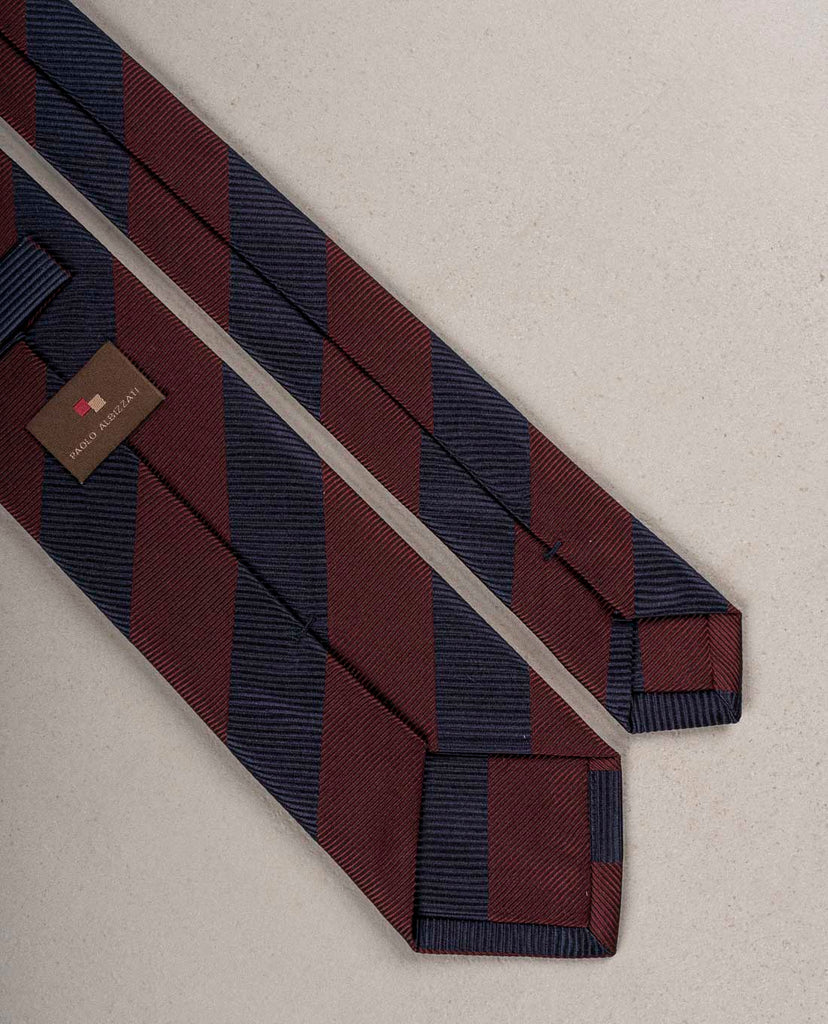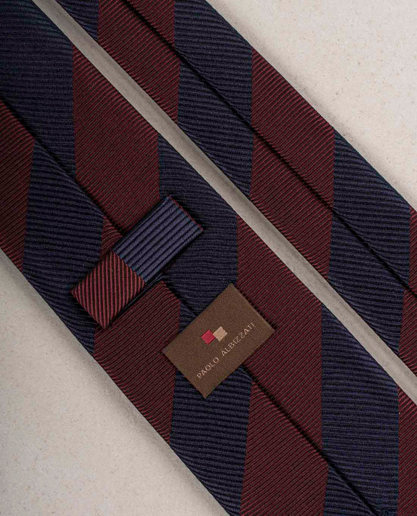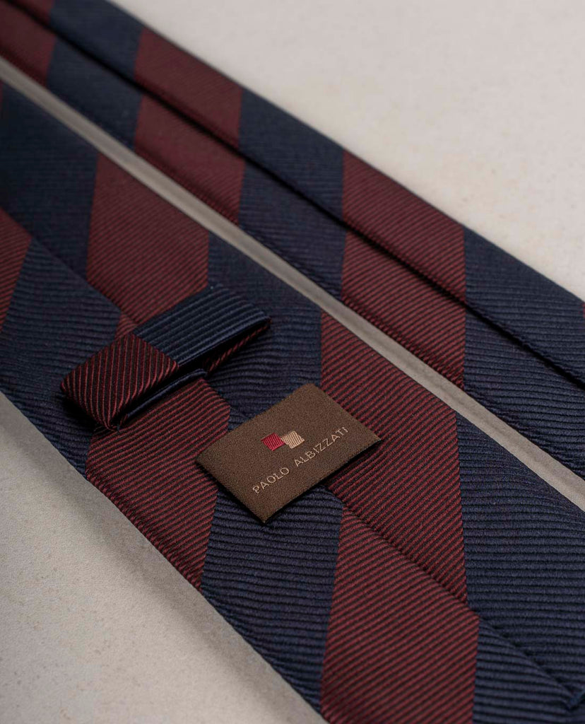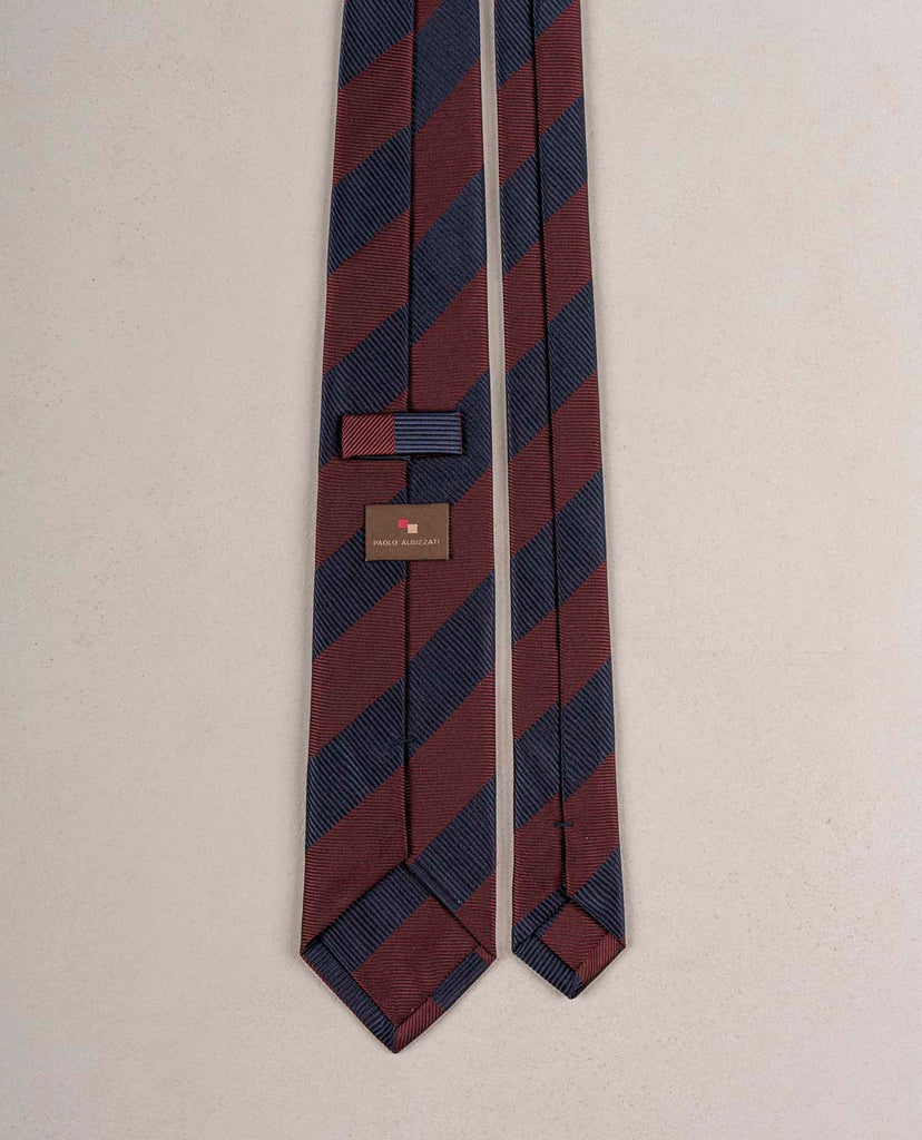 Striped Woven Silk Tie - Navy Blue and burgundy