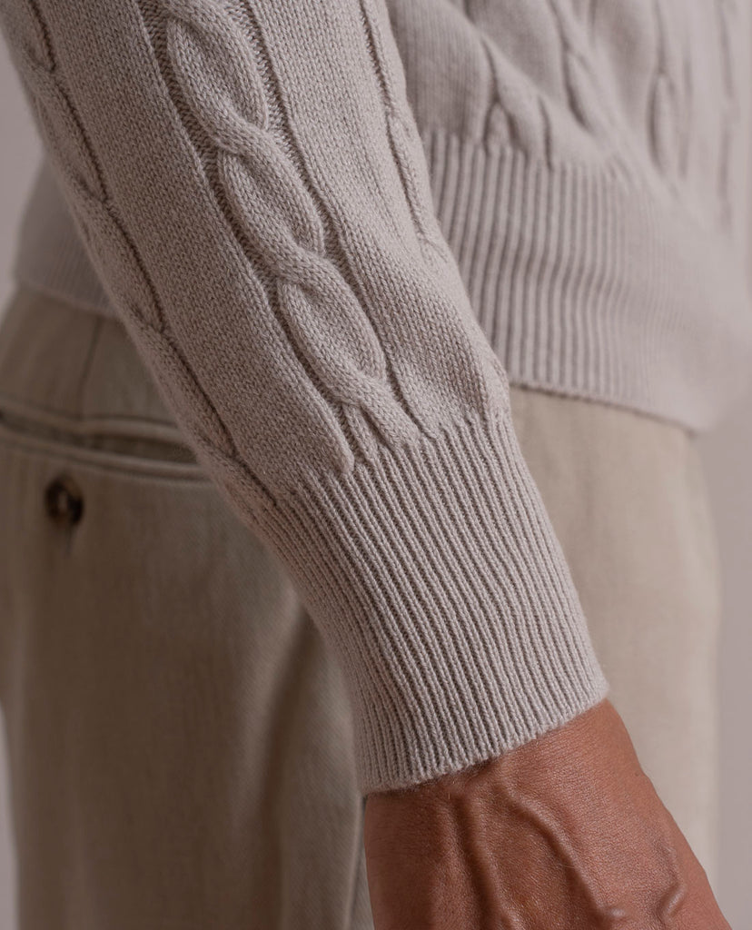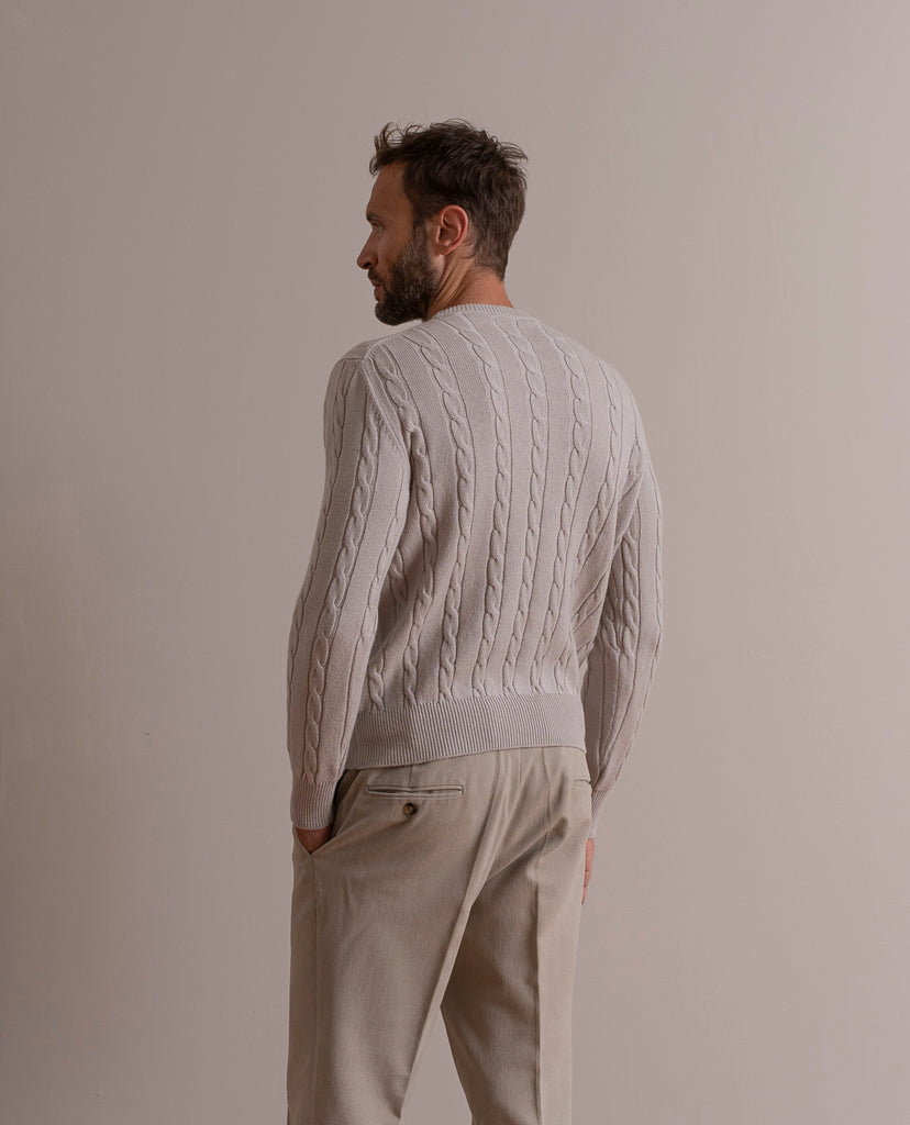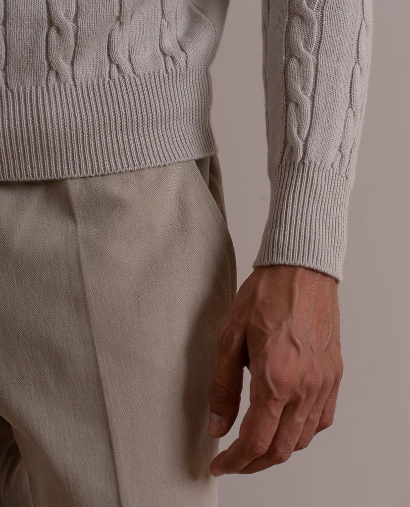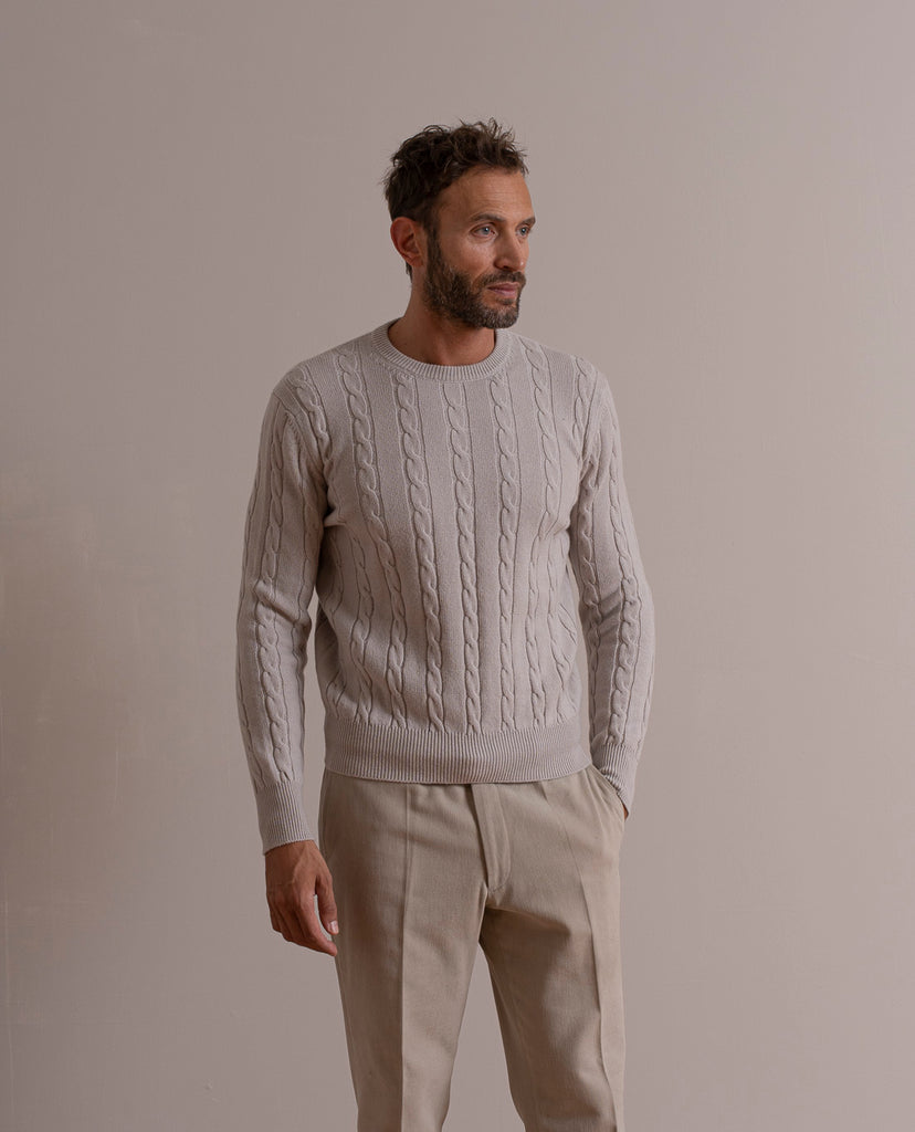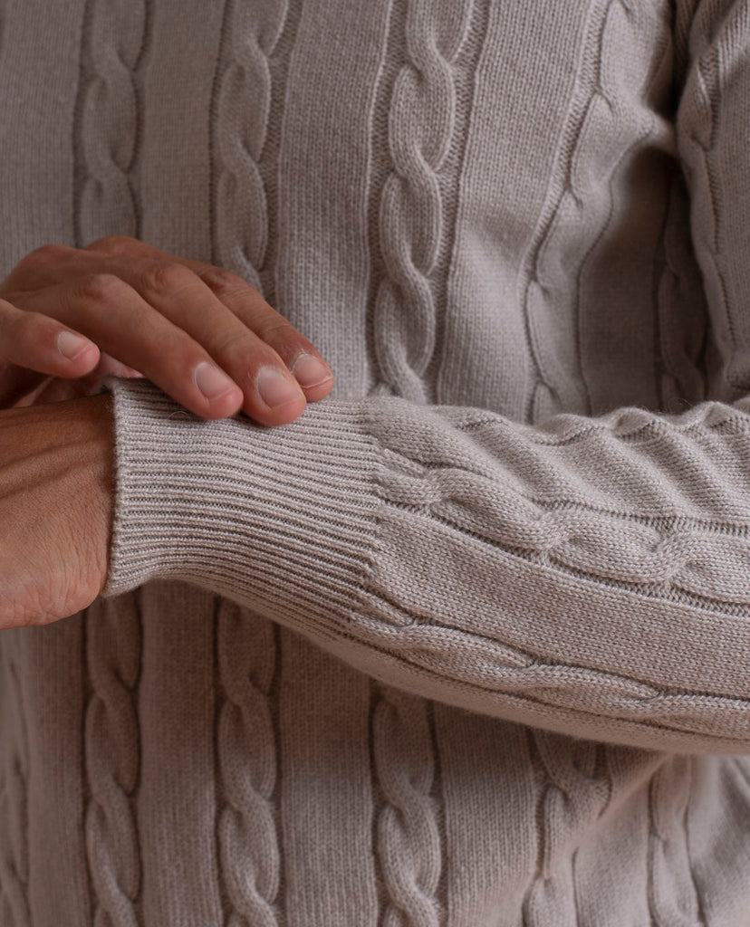 Pure Cashmere Cable Knit Sweater - Warm Grey