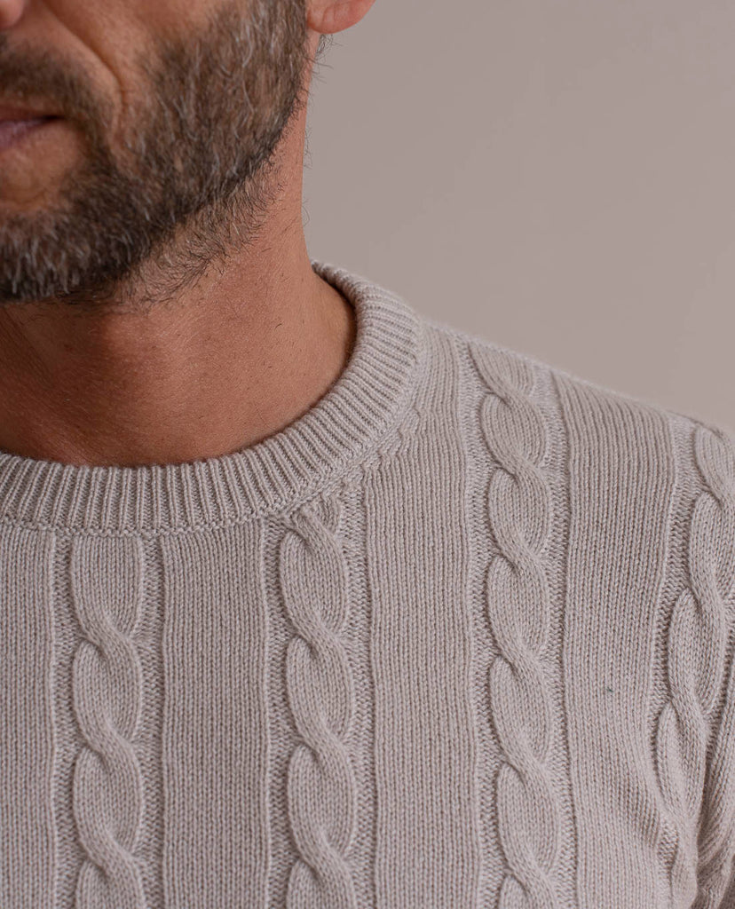 The Cable Knit Sweater in warm grey color is timeless piece you will wear on repeat during colder days.