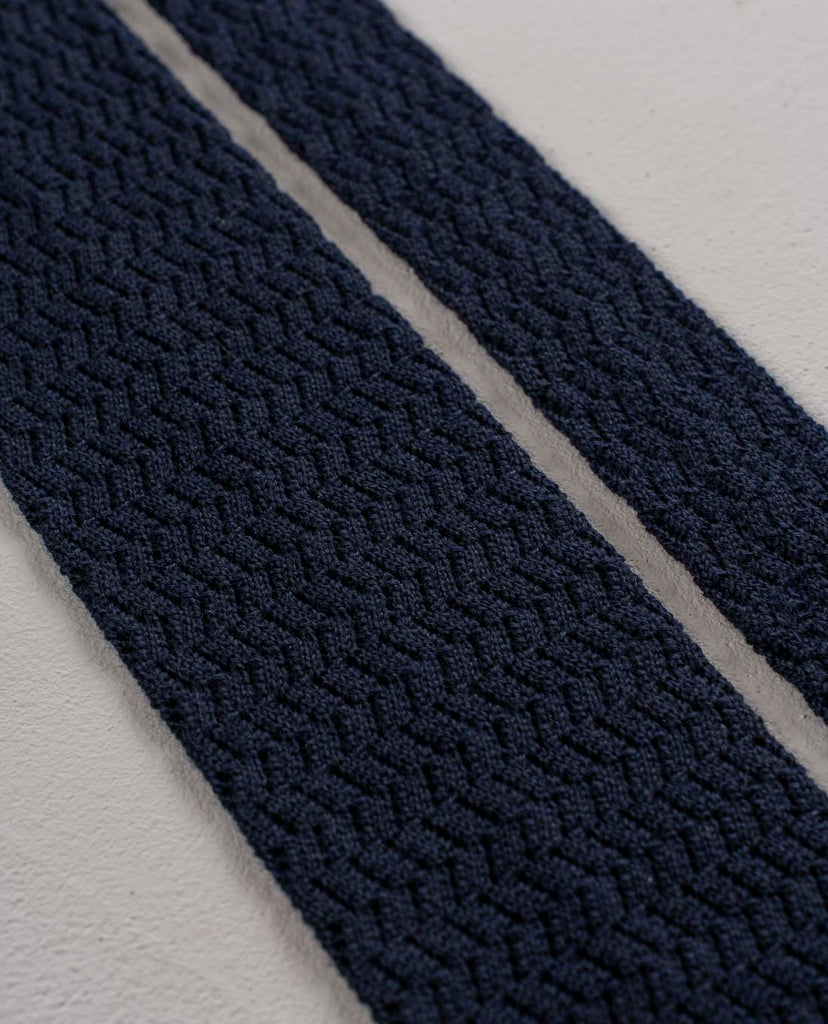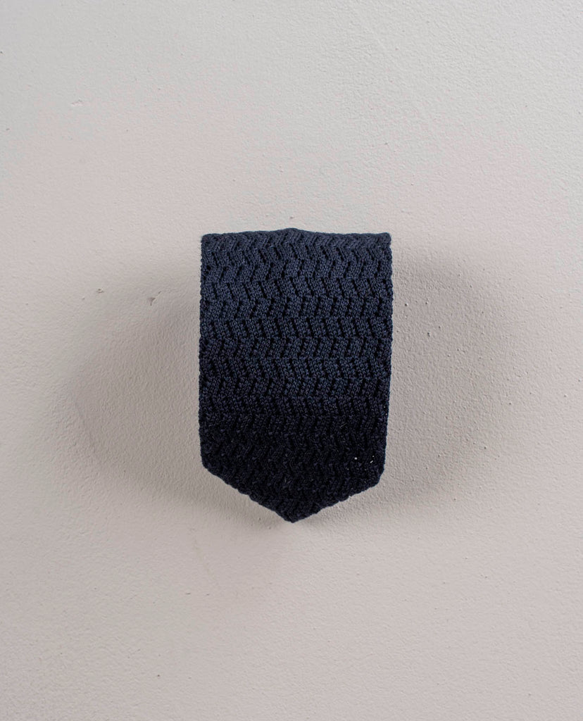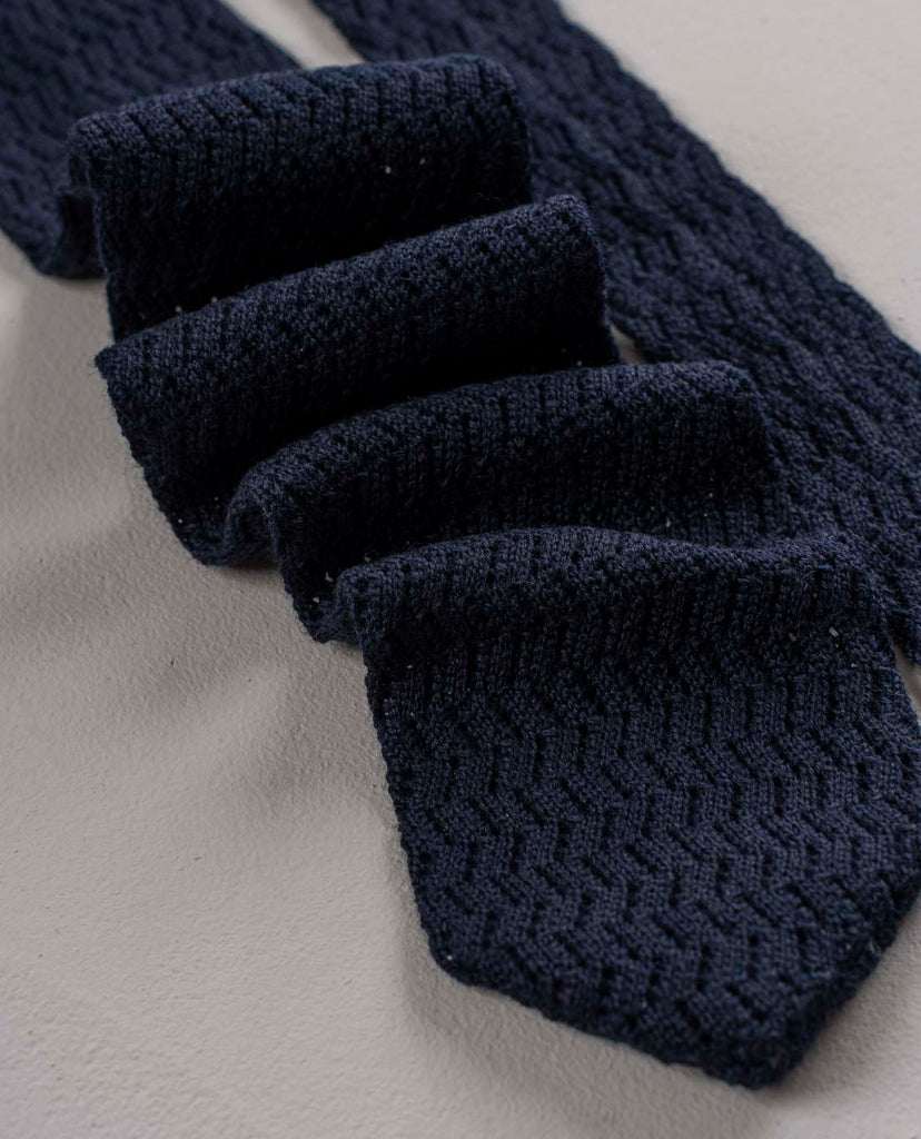 The Navy Blue Knitted Wool tie will serve you all season. This tie adds interest to a denim and flannel cotton shirt and shows its best when paired with textured blazers. Available also in Green and Grey Melange.