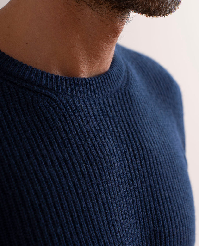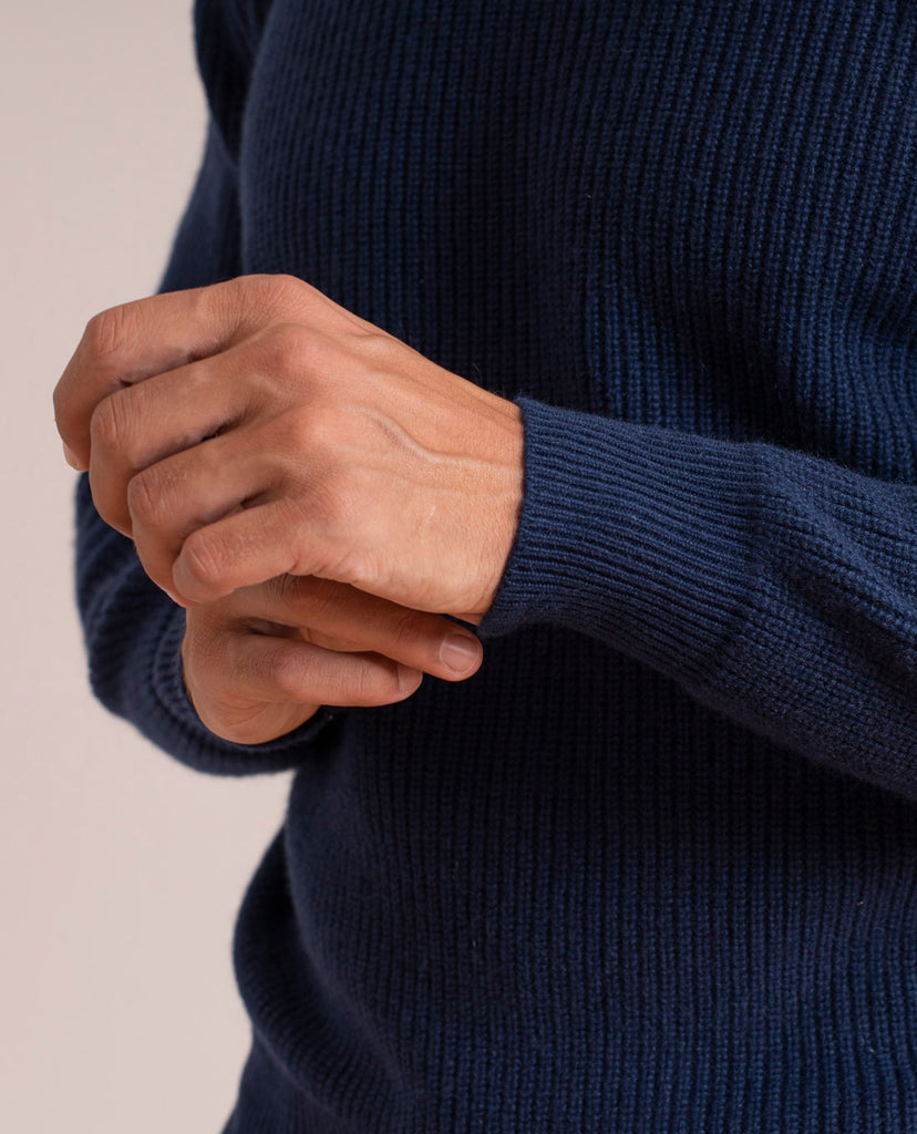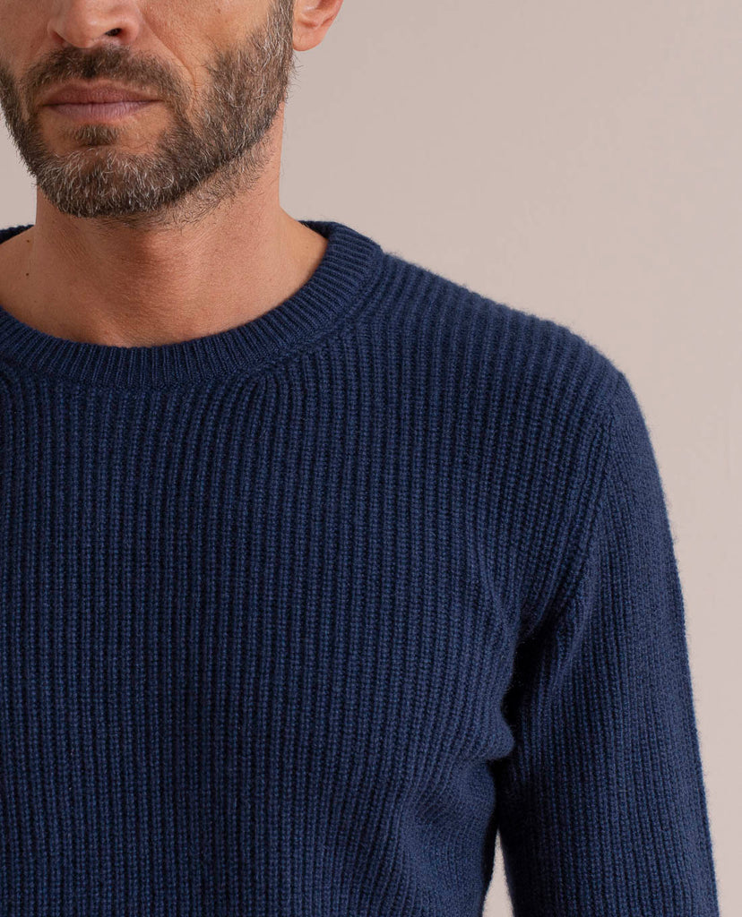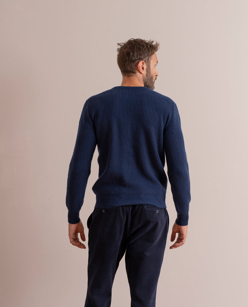 Pure Cashmere Rib Sweater - Navy Blue