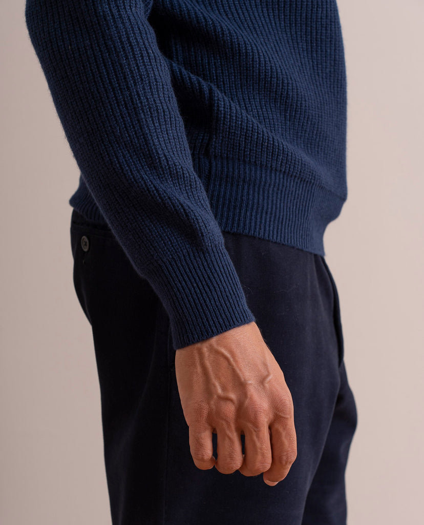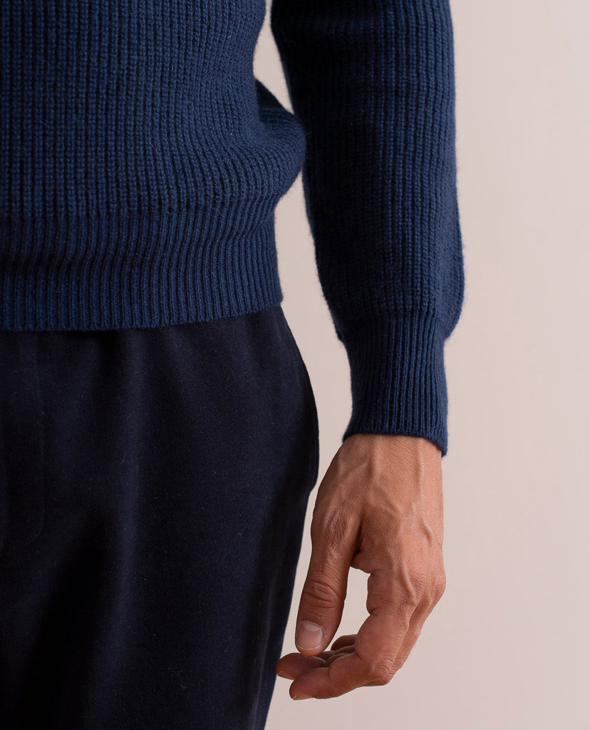 Navy Blue Cashmere English Rib Sweater
