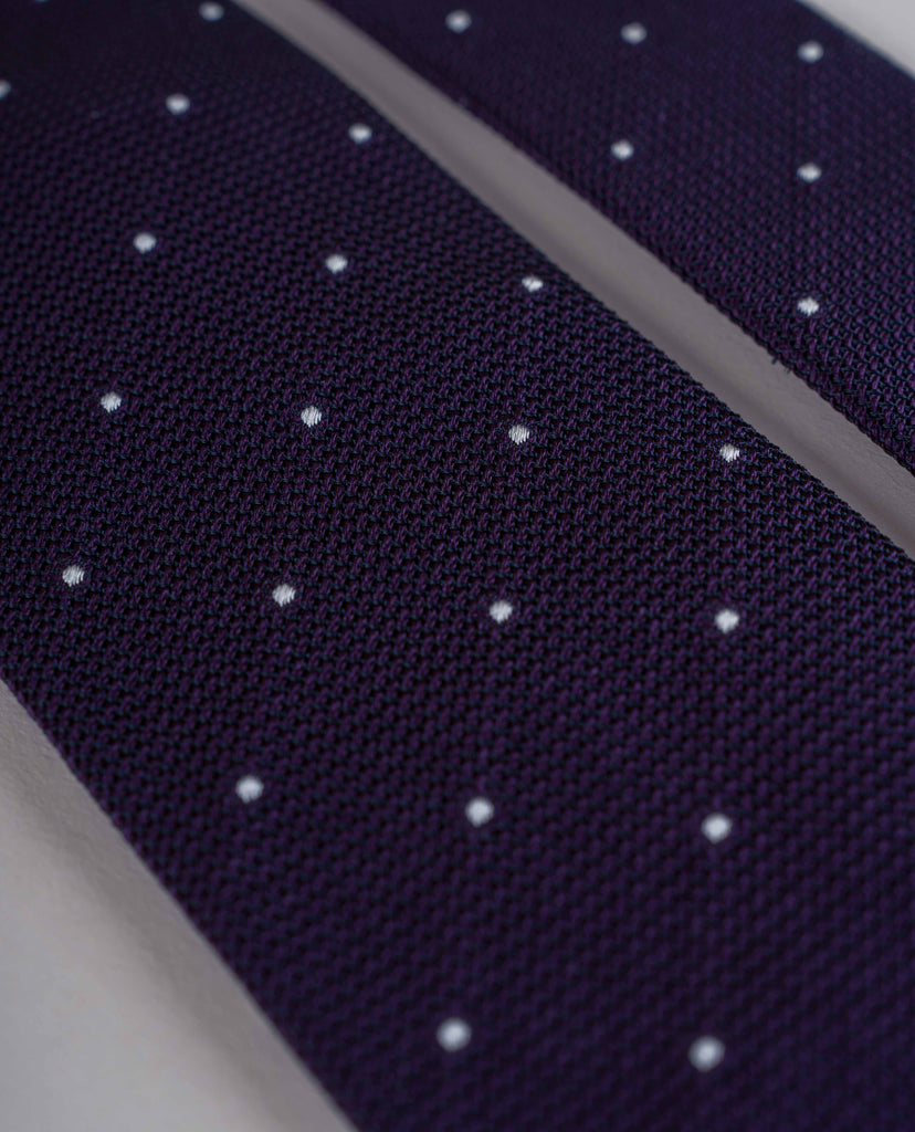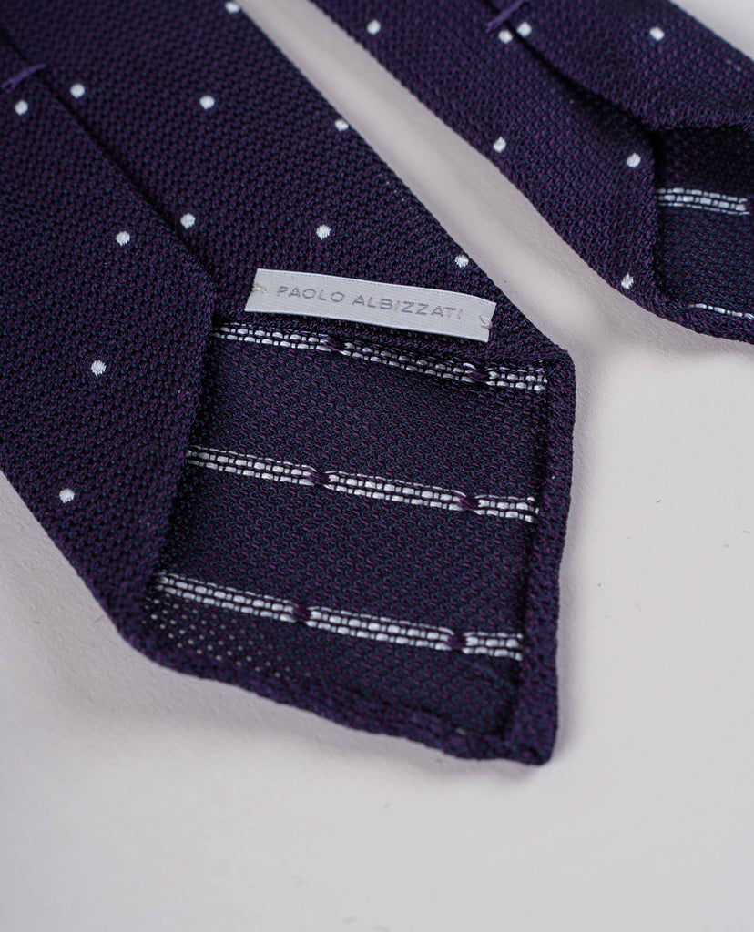 The Purple Grenadine Tie is Paolo Albizzati’s is refined choice for a classic outfit. The purple is a classic color, white dots add a sophisticated touch. The Grenadine Tie has untipped construction, handrolled edges and can be worn all year around.