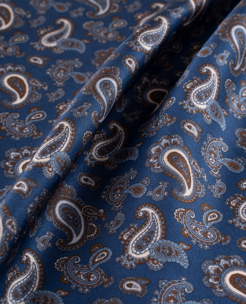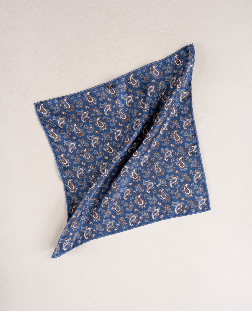 Pocket Square Silk Twill - Navy Blue Classic Paisley Print