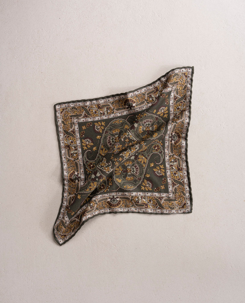 Reversible Silk Pocket Square - Green Paisley Foulard Print