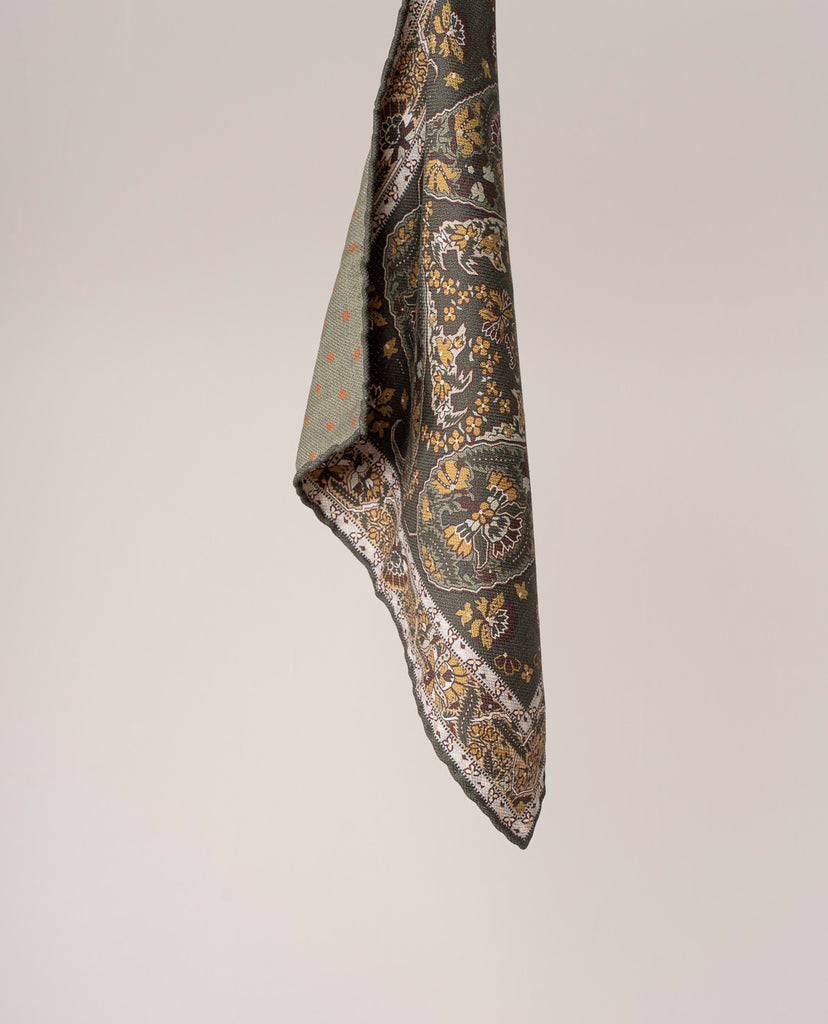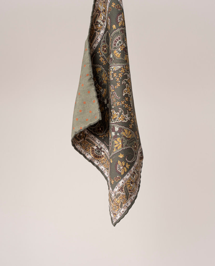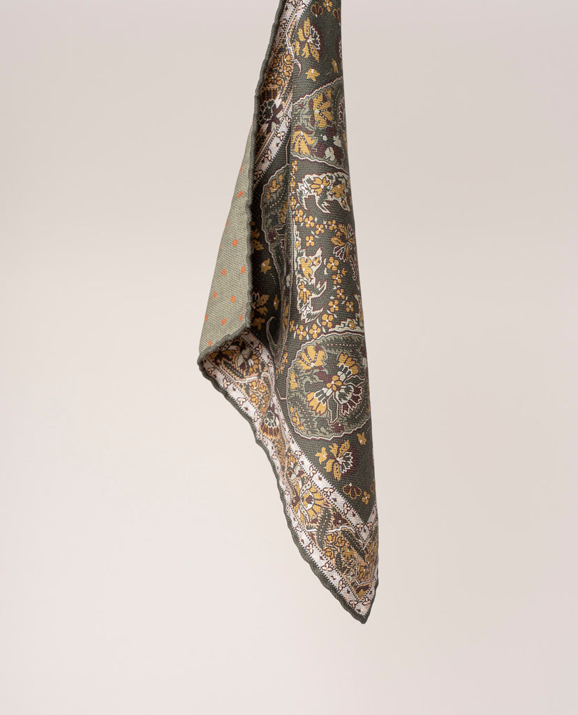Green Paisley Foulard Print Reversible Silk Pocket Square