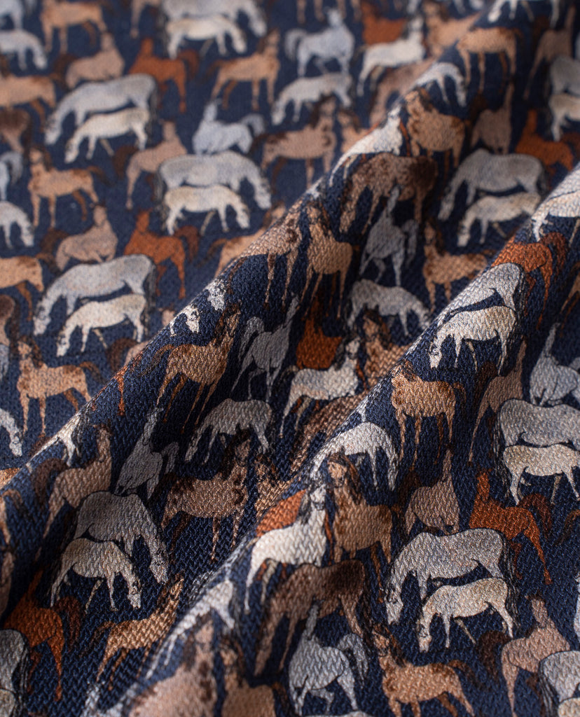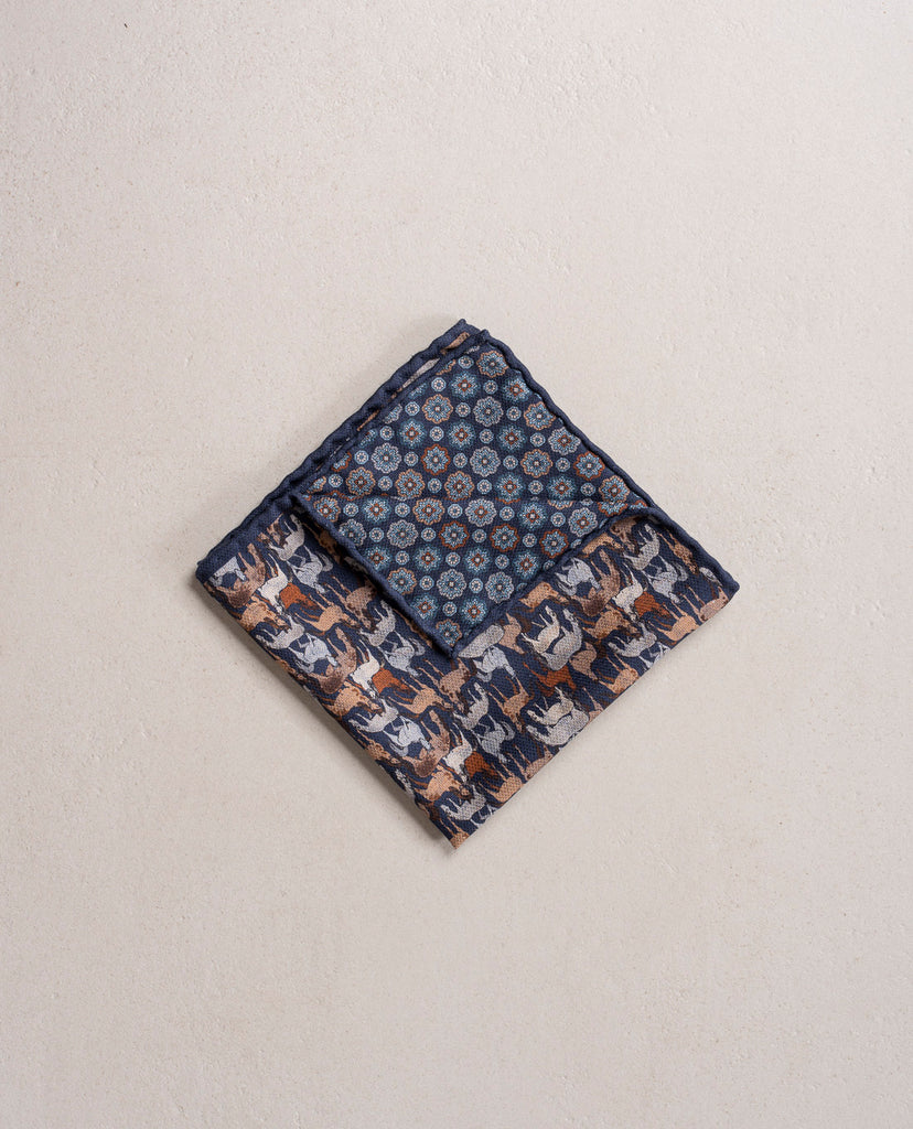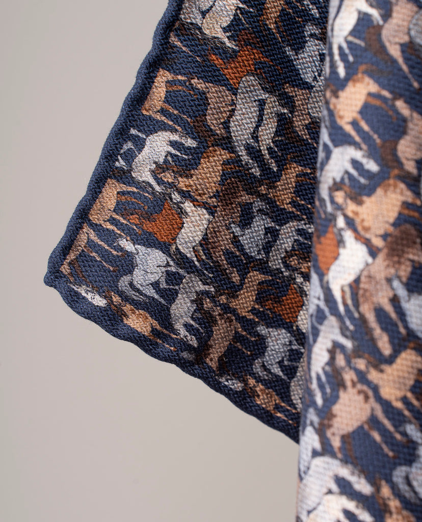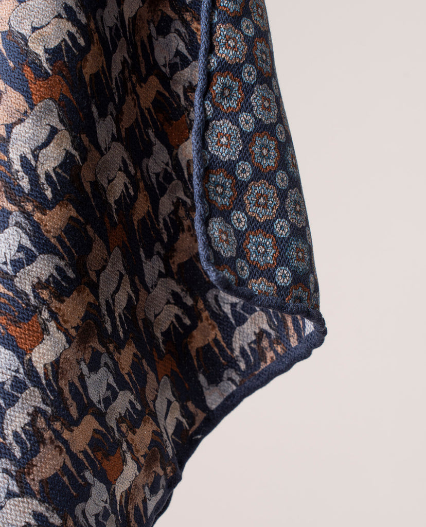 Reversible Silk Pocket Square - Navy Blue Horses Print