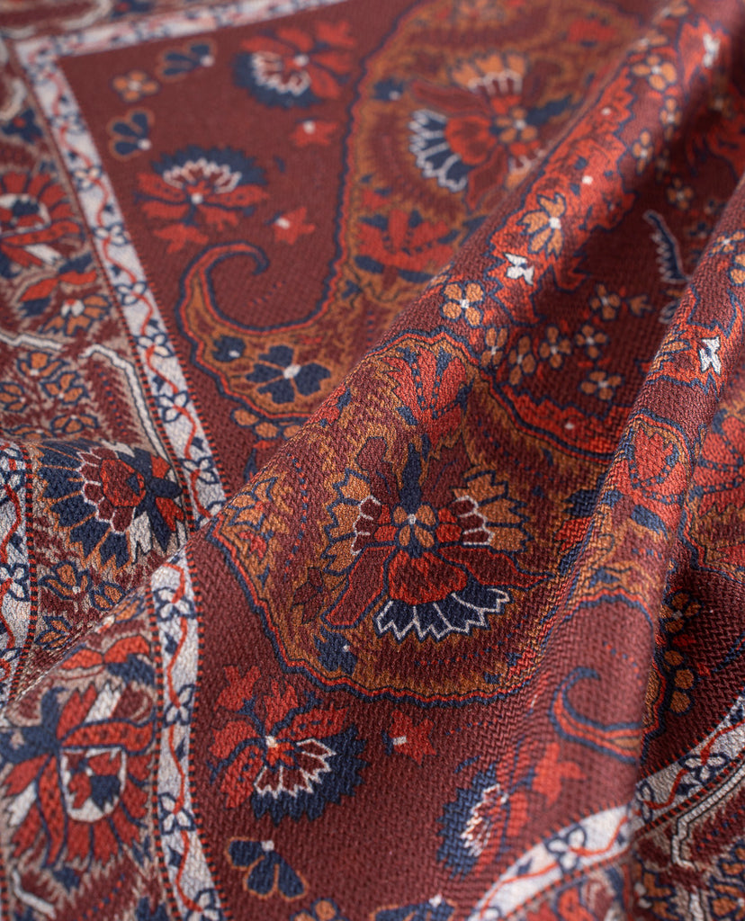 Reversible Silk Pocket Square - Burgundy Red Paisley Foulard Print