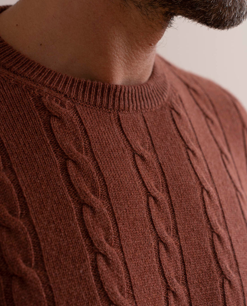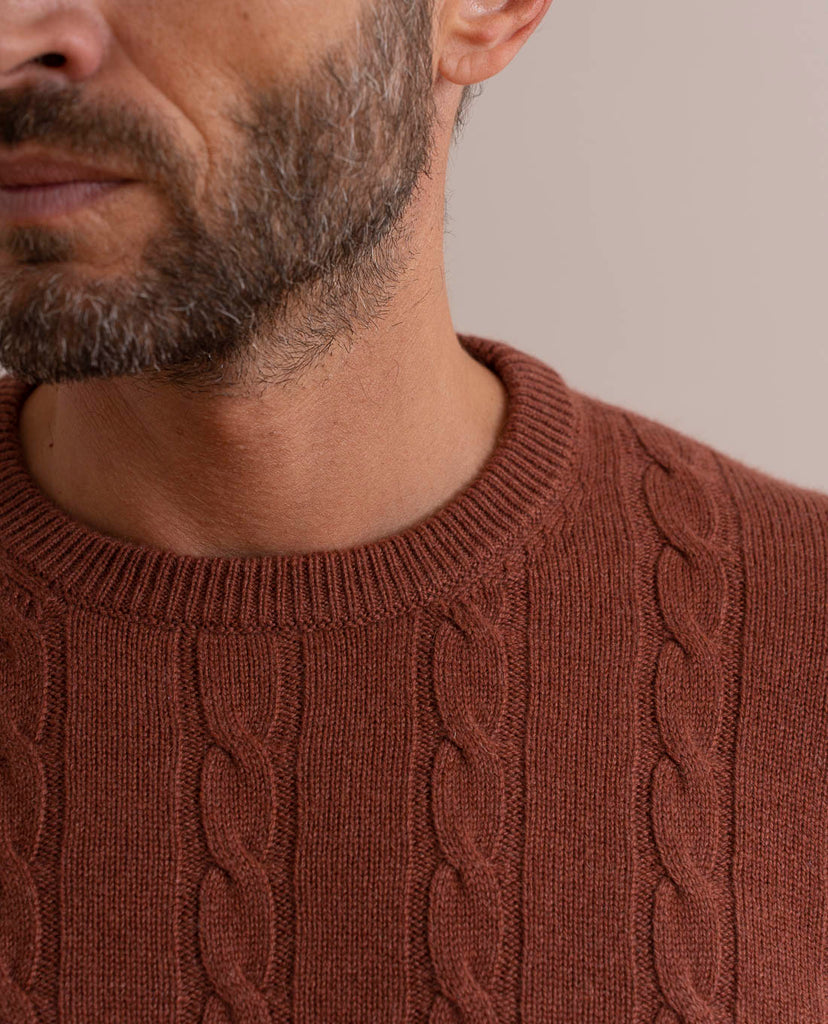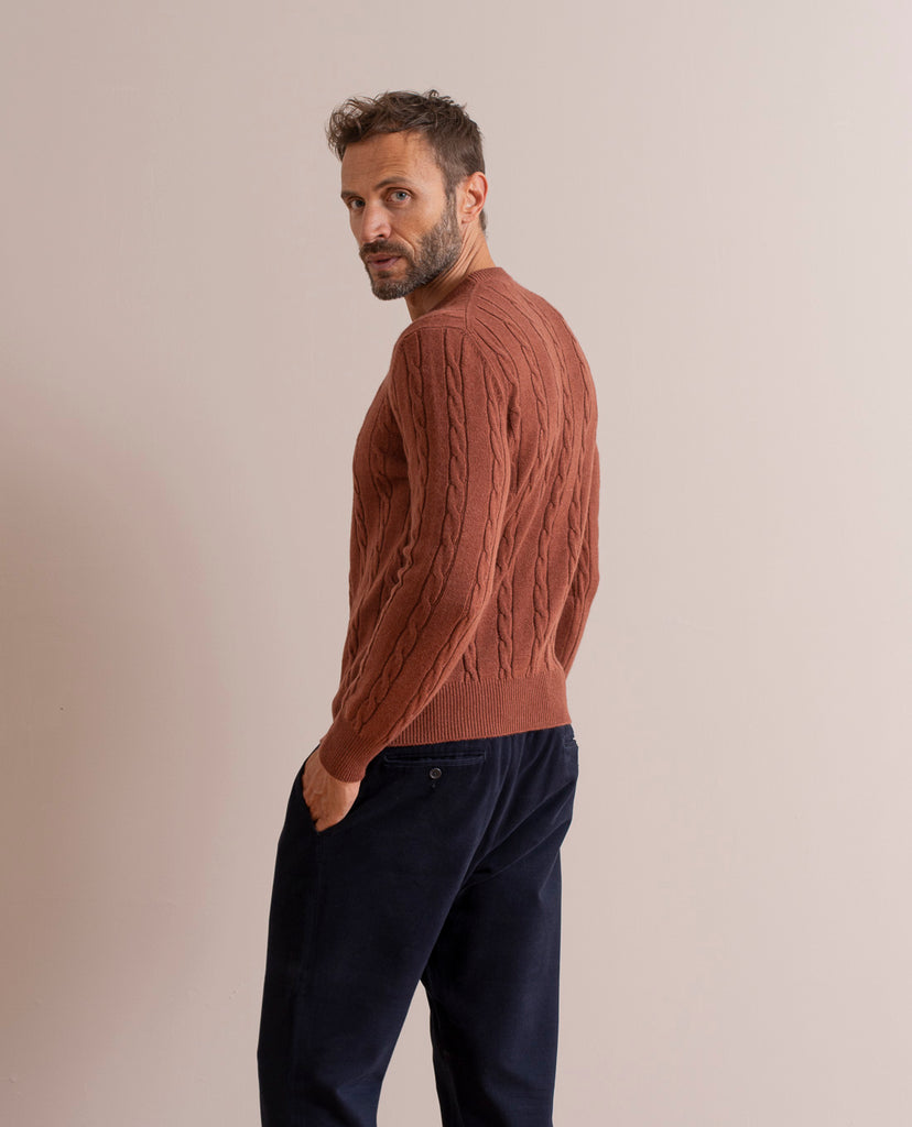 The Cable Knit Sweater in refined rust color will add cosiness and warmth to autumn and winter days.