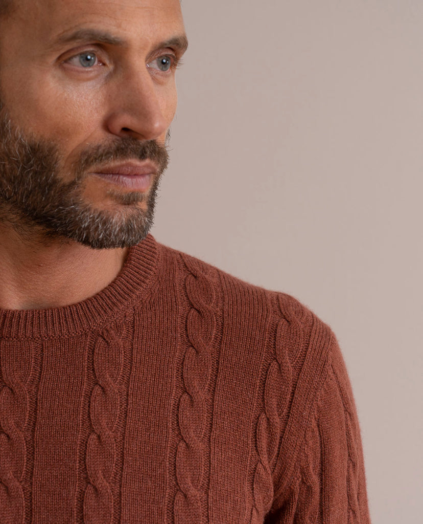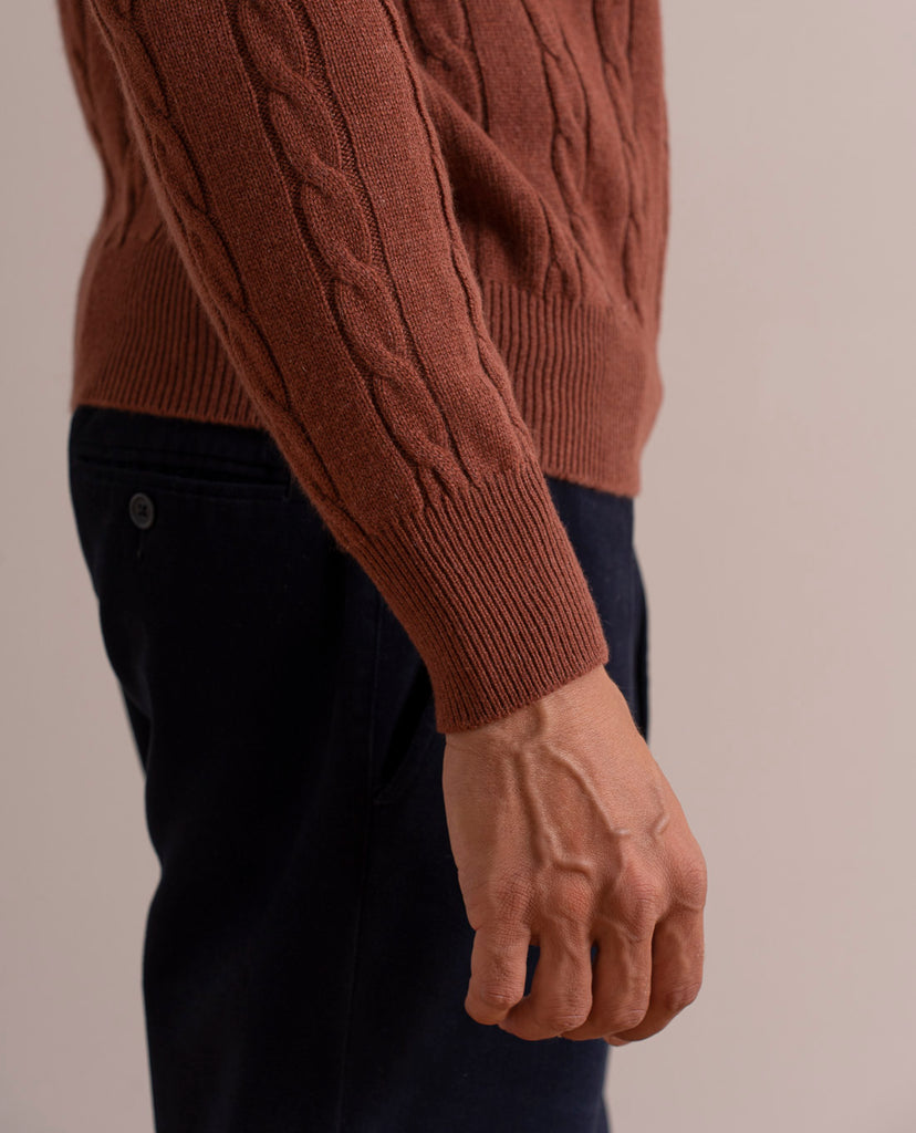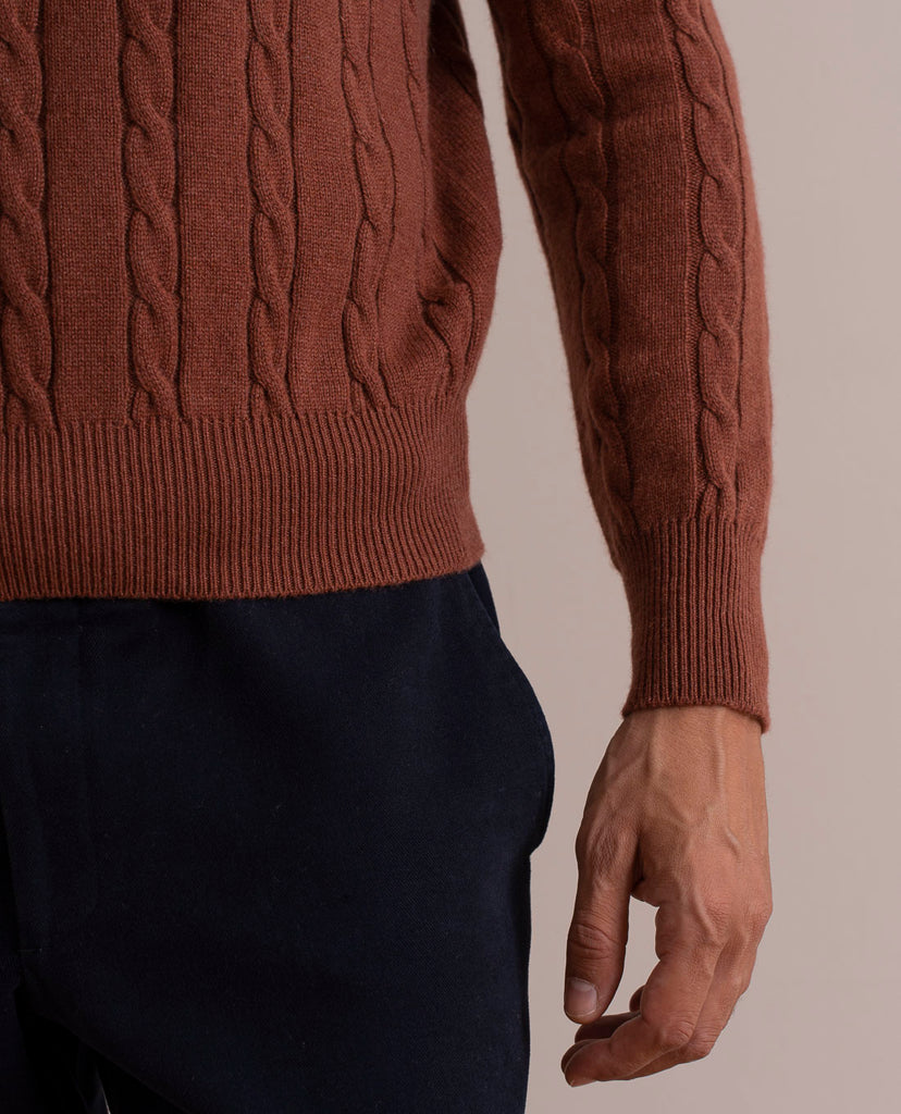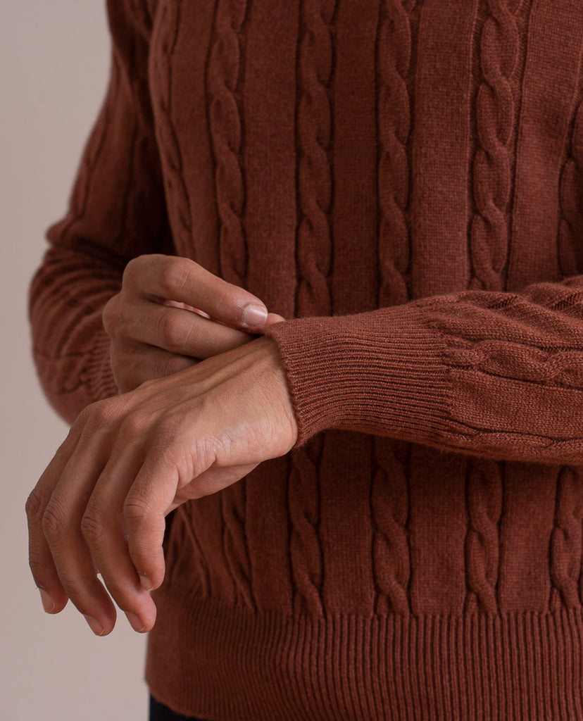 Cable Knit Rust Cashmere Sweater