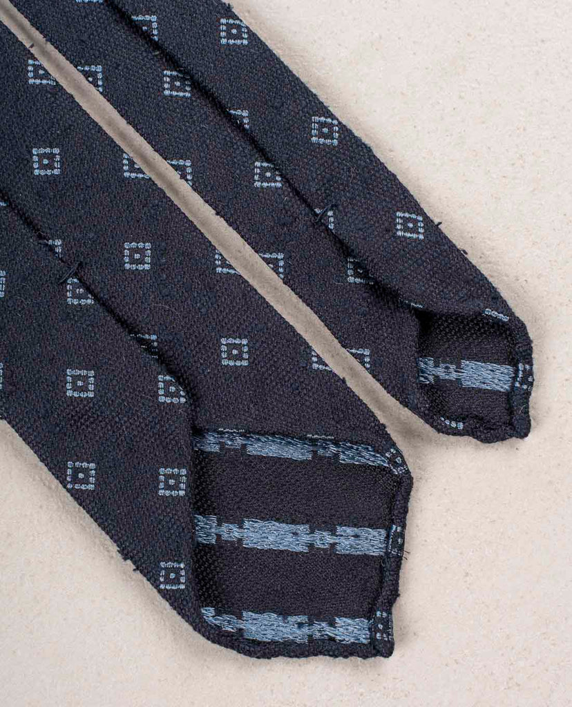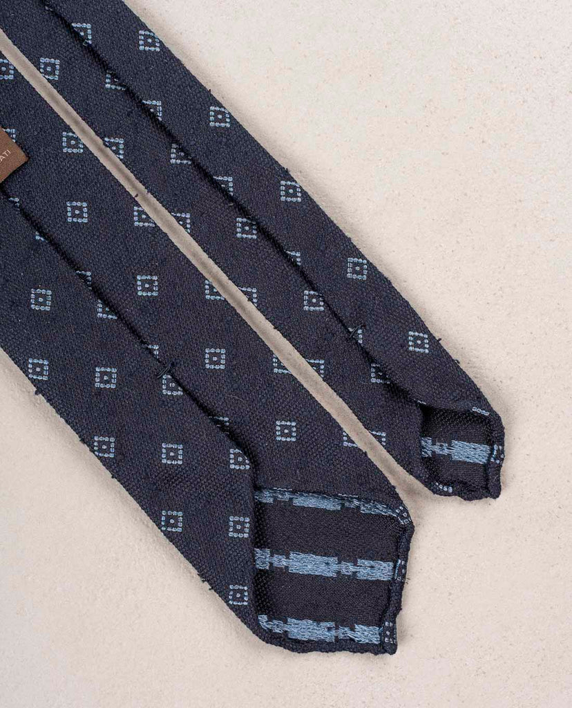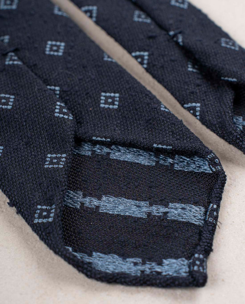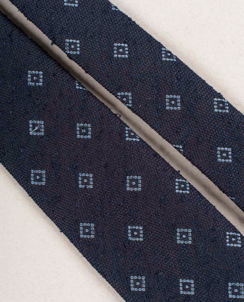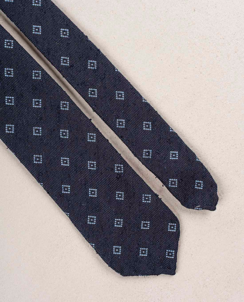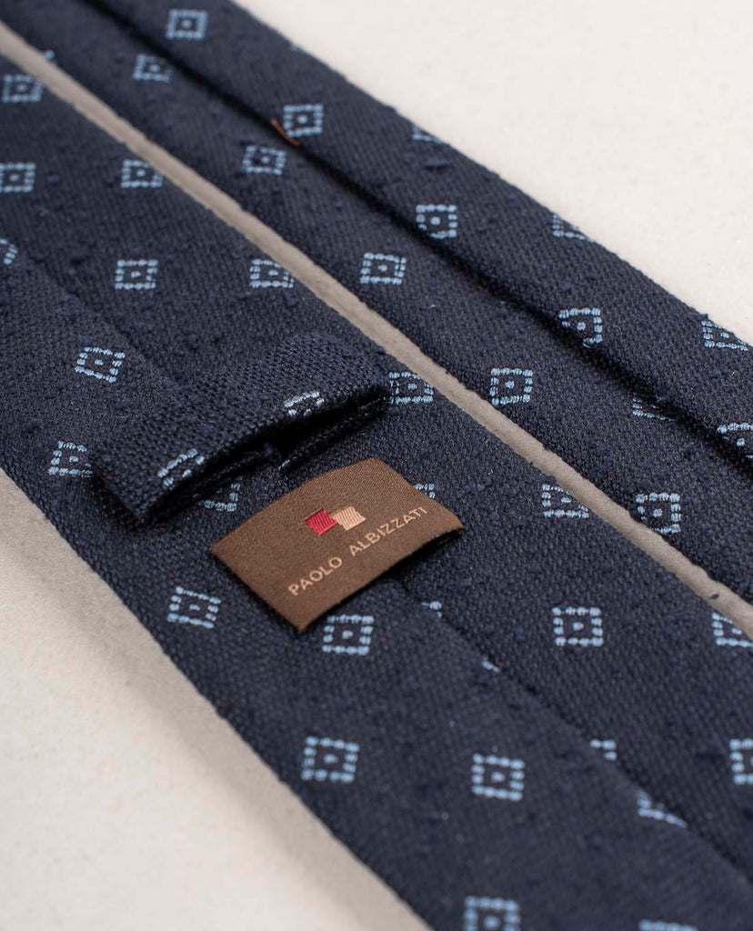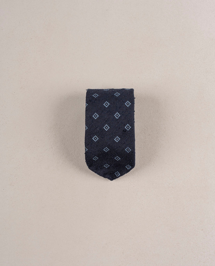Navy Blue with Light Blue Micro Motif Shantung Woven Silk Tie