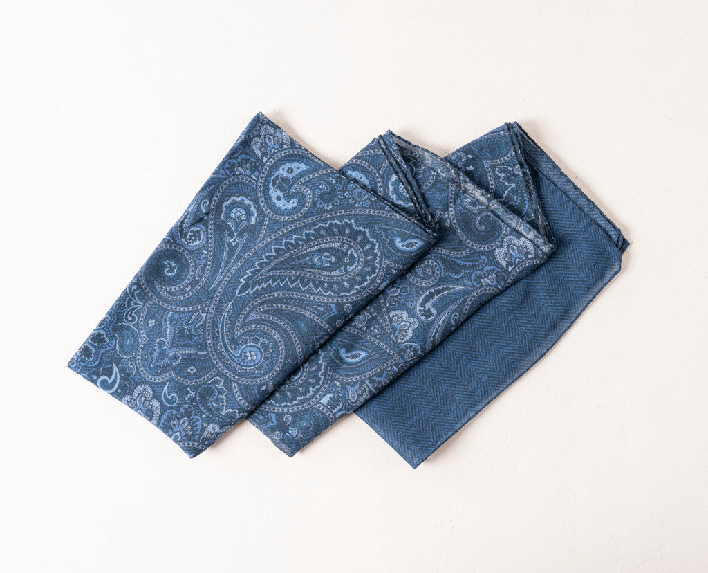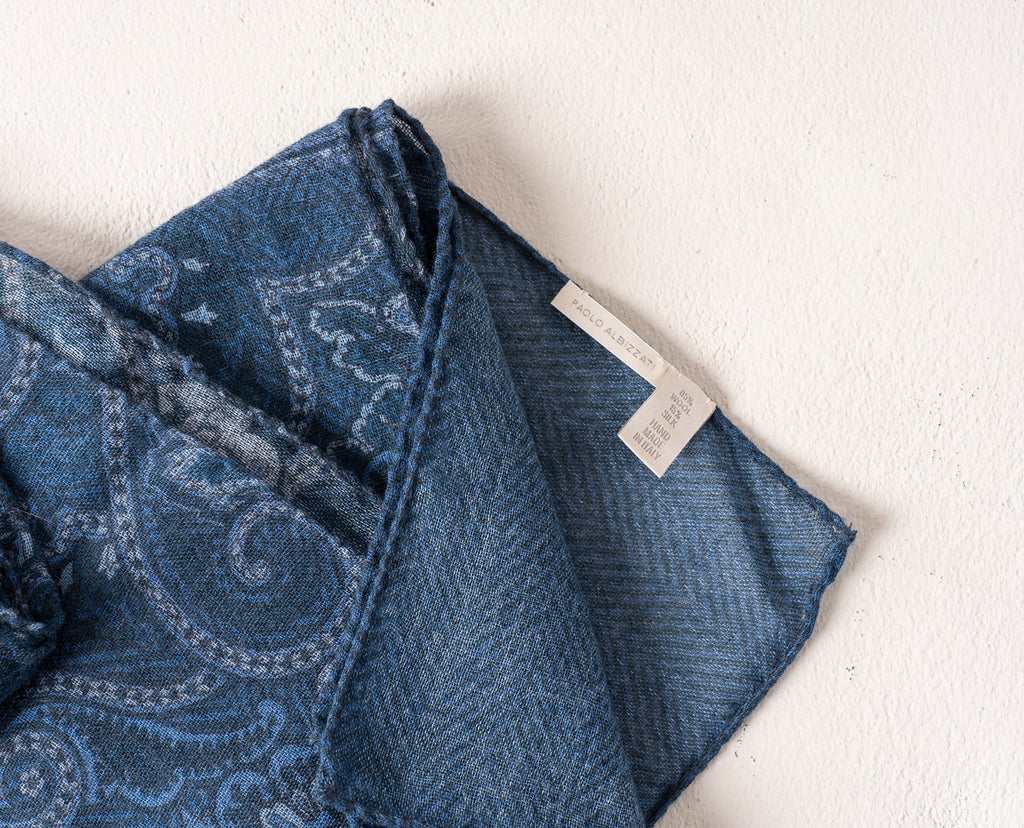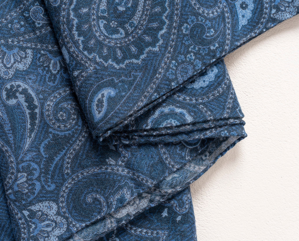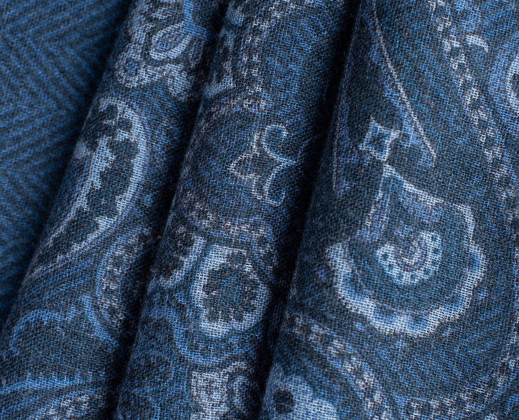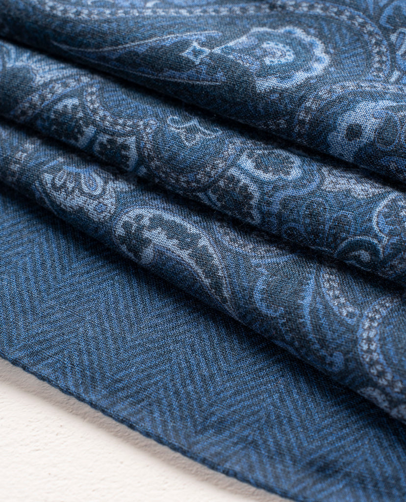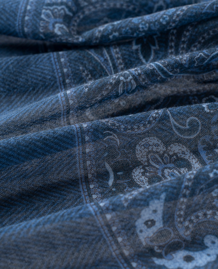 Soft Wool Scarf - Blue Paisley Print