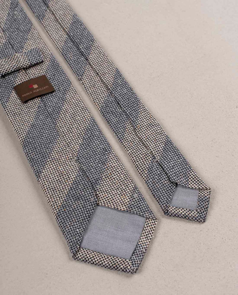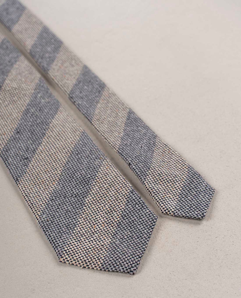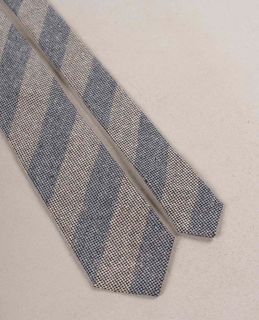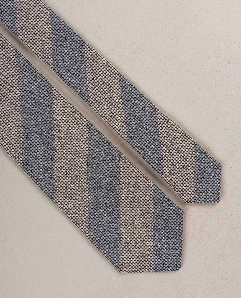 Grey Melange Beige Striped Woven Donegal Silk Tie