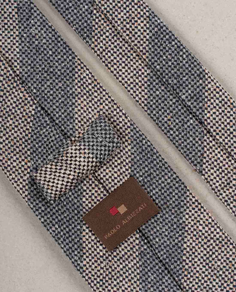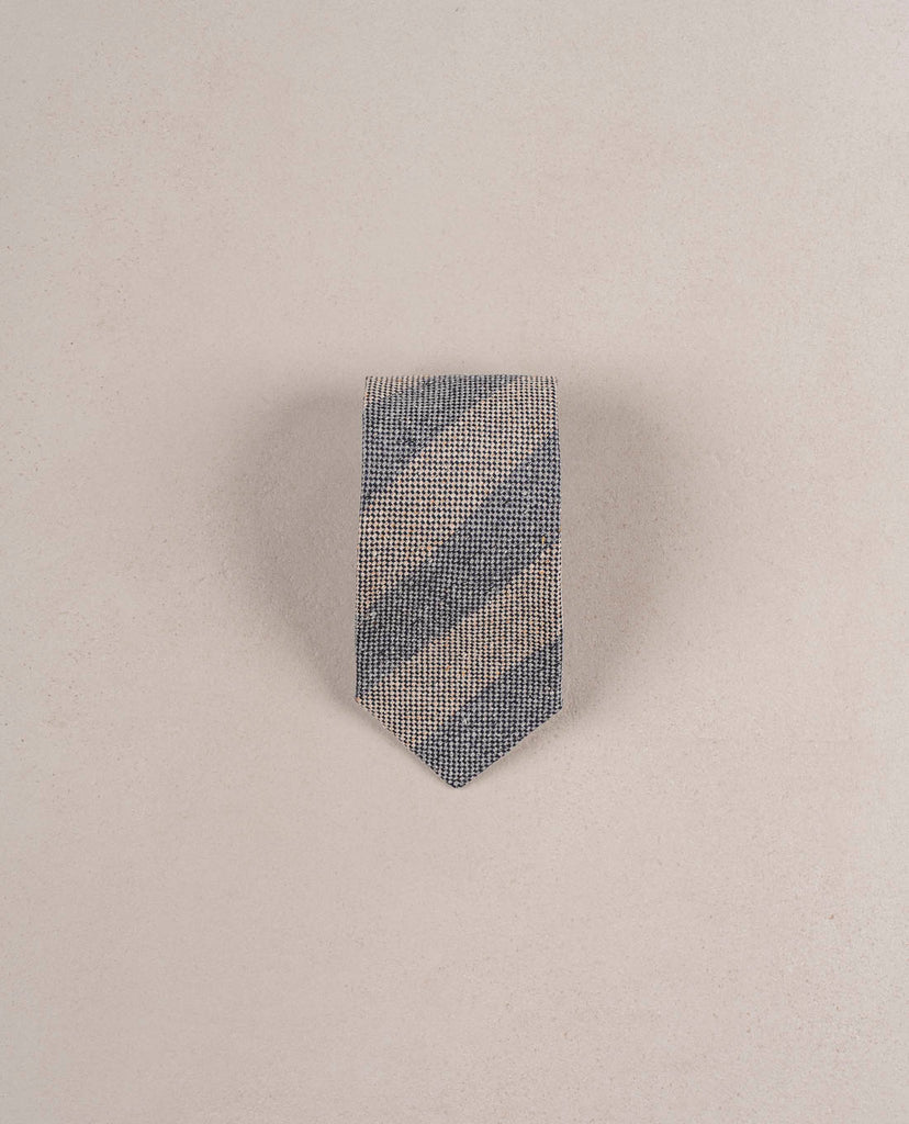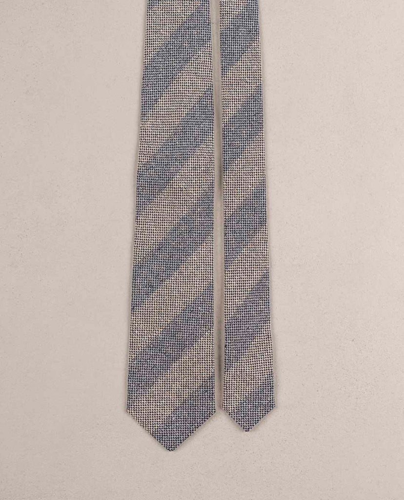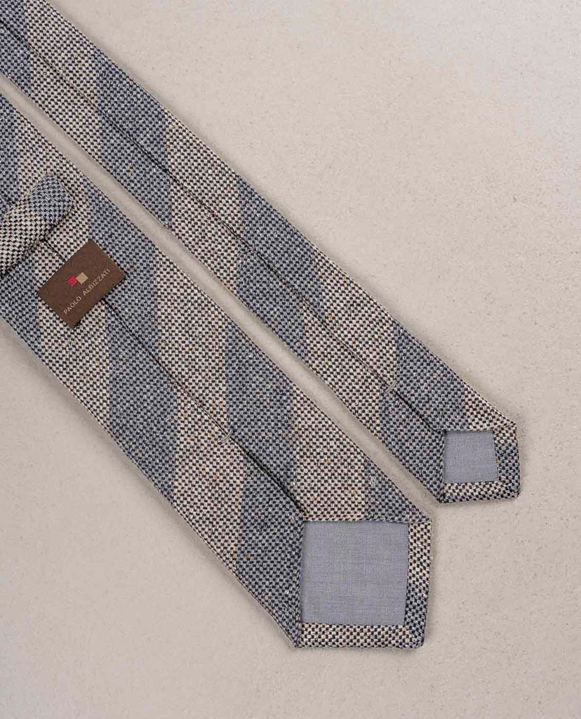 Grey Melange Beige Striped Woven Donegal Silk Tie