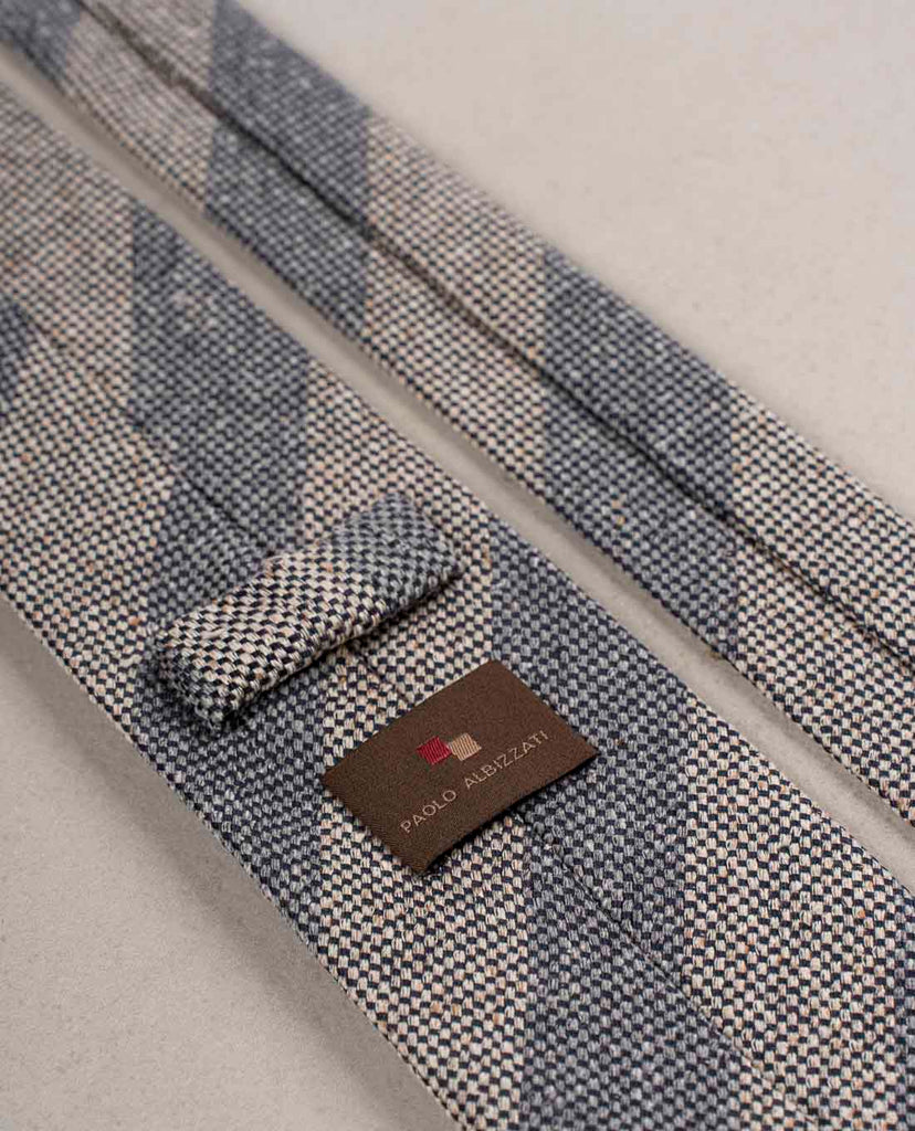 This Grey and Beige Striped Tie is made of Donegal style fabric. The Donegal textured material is woven from a rare silk yarn. This Tie will be a functional piece in your wardrobe. You can wear it for business and on more casual occasions.