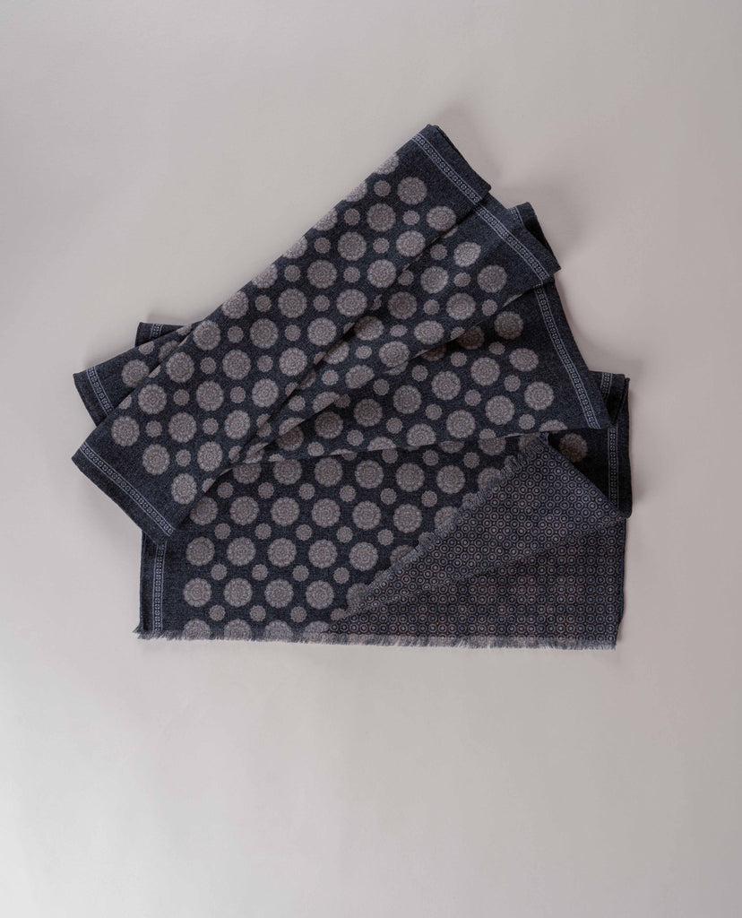 Wool Printed Scarf - Charcoal Grey Melange Medallion Print