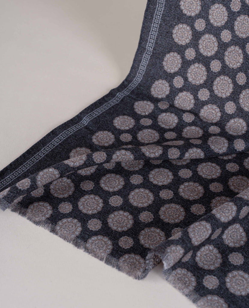 Charcoal Grey Melange Medallion Print Wool Scarf