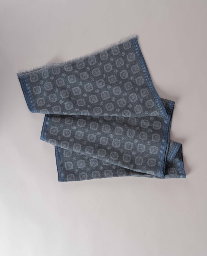 Wool Printed Scarf - Sage Pastel Green Melange Medallion Print