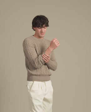 Cable Knit Beige Cashmere Sweater